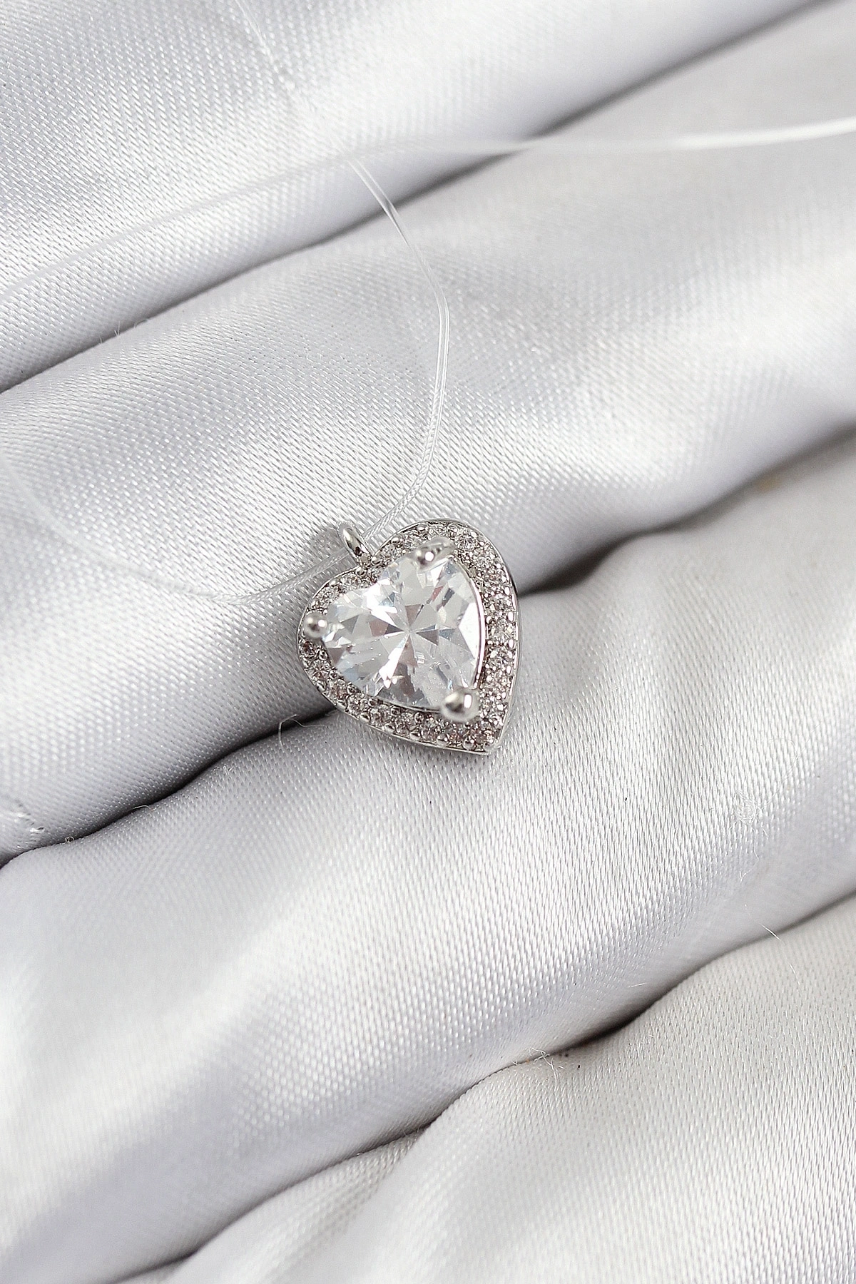 Misineli Kalp Model Gümüş Renk Hayalet Kolye