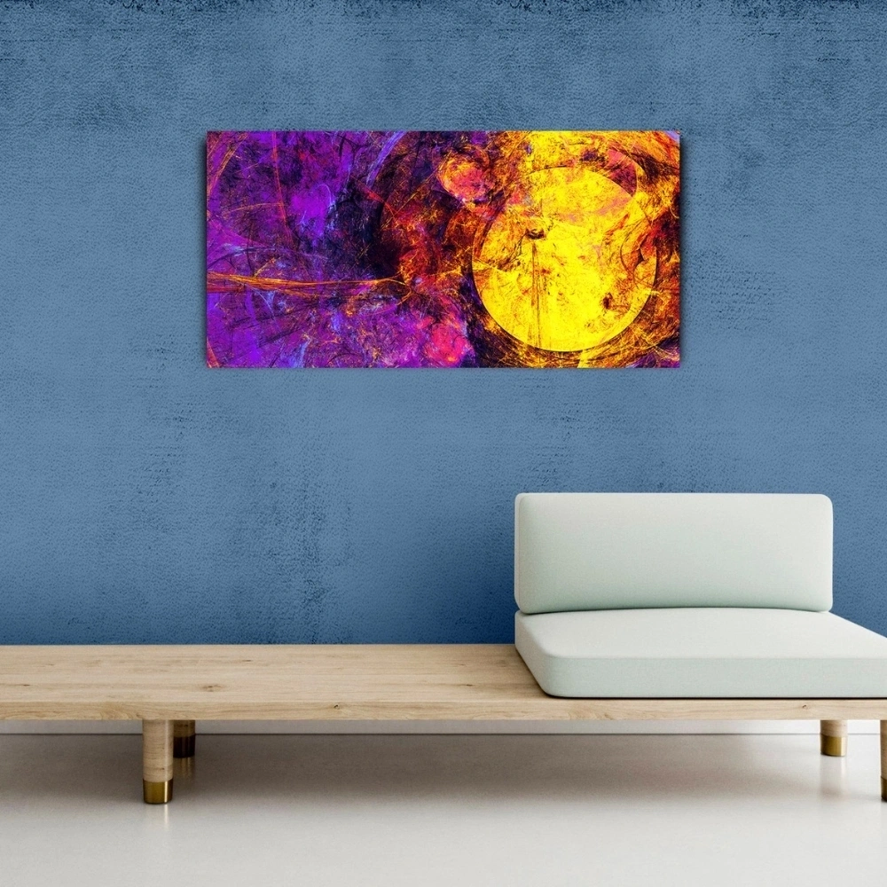 Mor ve Sarı Tonlarda Soyut Kanvas Tablo 60 x 120