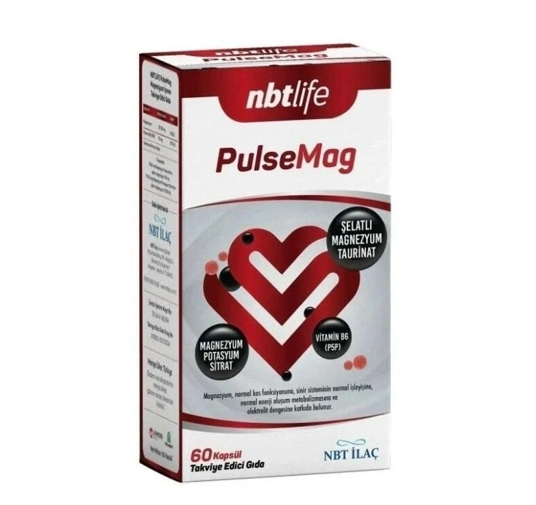 Türkiye’nin ilk şelatlı magnezyum taurinat, magnezyum potasyum sitrat ve P5P kombinasyonu nbtlife PulseMag!