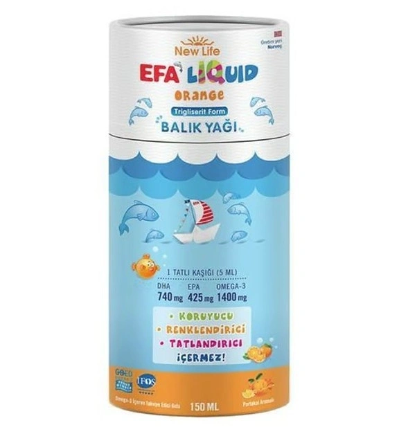 EFA Liquid 5 ml’de yüksek ve klinik çalışmalardaki dozu karşılayabilecek düzeyde omega 3 ve EPA içermektedir.