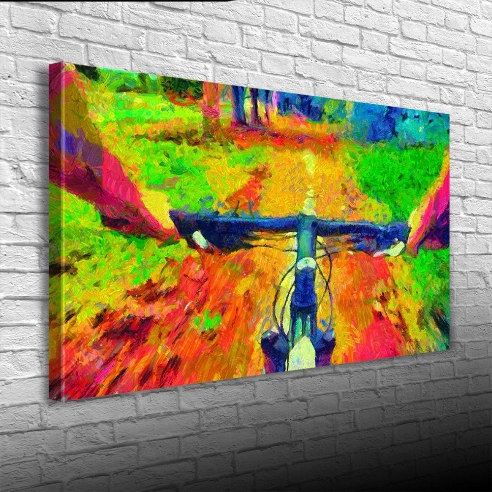 Ormanda Dağ Bisikleti Kanvas Tablo 60 x 120
