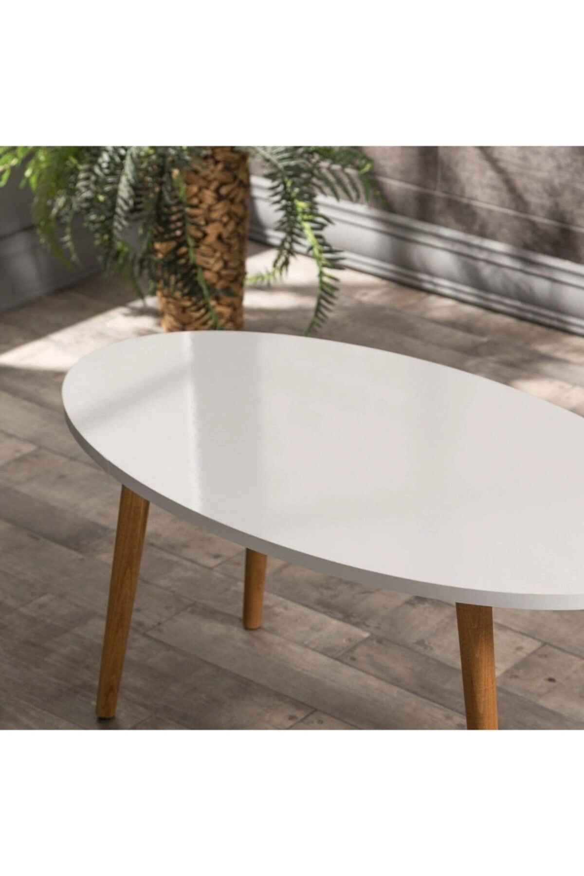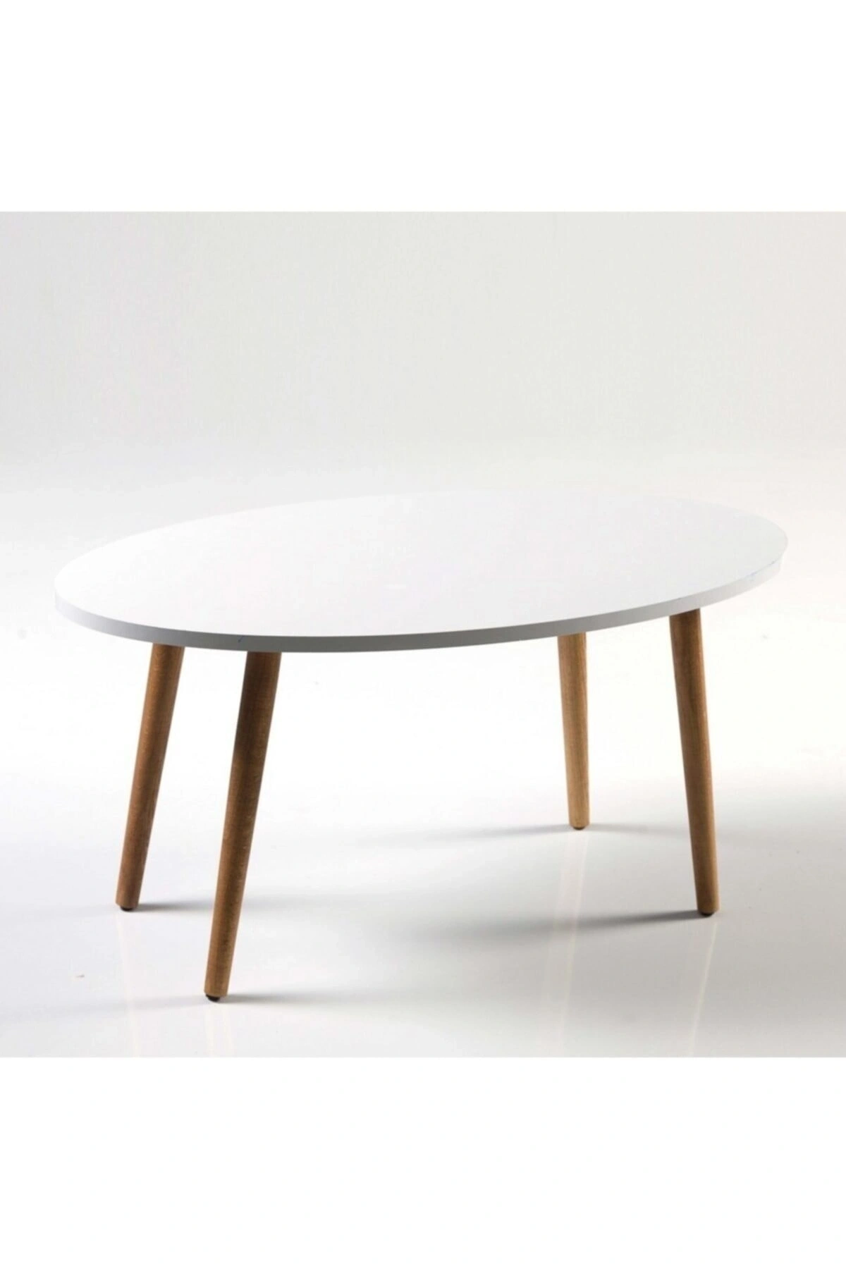 Orta Sehpa Ahşap Torna Ayak Elips Beyaz