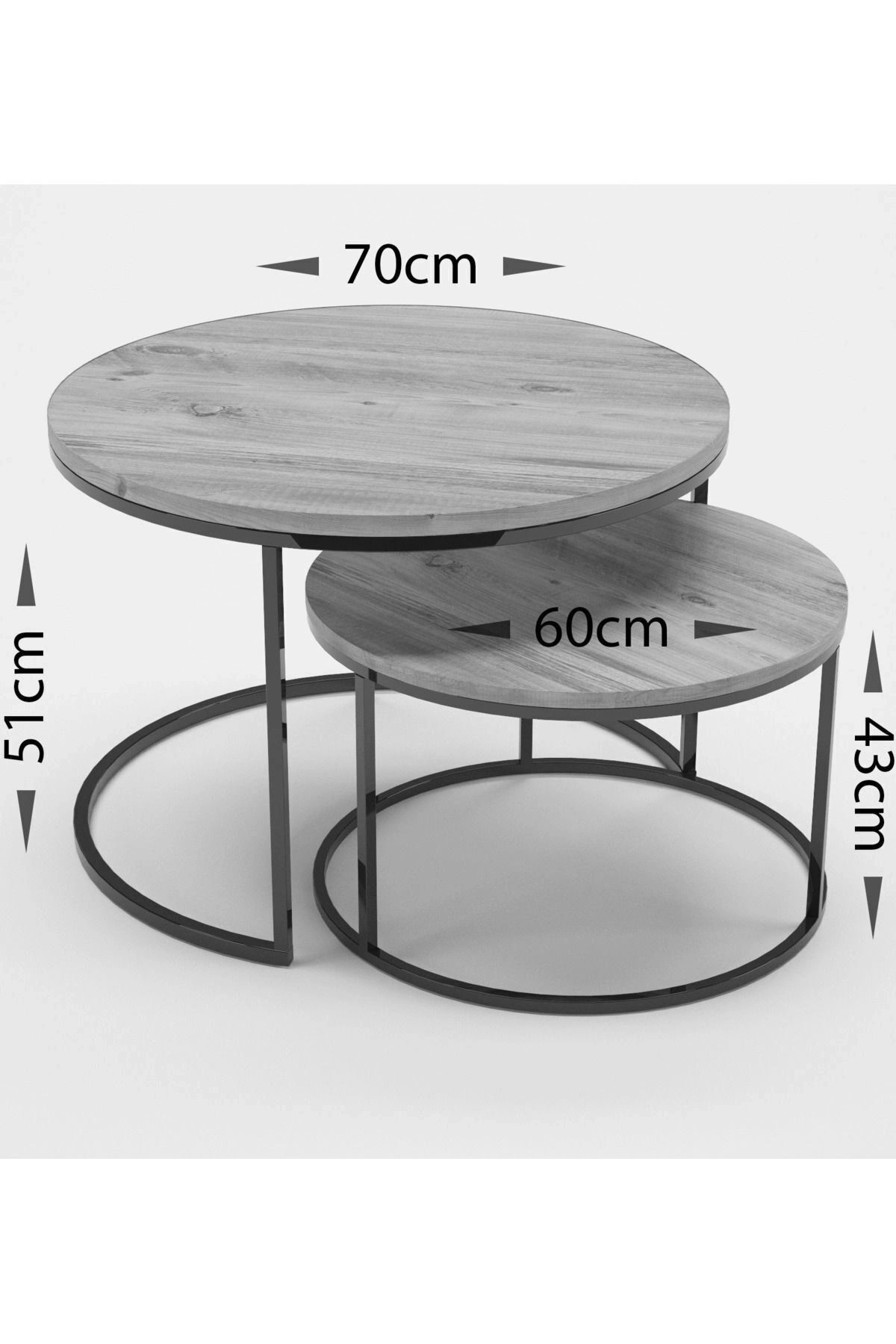 Ürün ölçüleri ; Büyük orta sehpa 70 çap yükseklik:51 ; Küçük orta sehpa 60 çap yükseklik:43 ; Üst tabla 1.kalite yonga levhadır ; Kenarları 1. sınıf özel üretim PVC bant ile kaplıdır. ; Kullanılan malzeme TSE, Avrupa Birliği EN, ISO 9001 ve FSC belgelerine sahiptir. ; Ayaklar 1.kalite1*20 15*15 profil ; Ürün ayak boyası 1.sınıf statik boyadır ; Paketlerde kolay kurulum için gerekli tüm vida ve aksesuarlar bulunmaktadır. ; Ürünün montajı oldukça kolaydır. Demonte olarak tarafınıza gönderim sağlanmaktadır. Kurulum yapılacak yerler nokta ile gösterilmiştir. Vidalaması sizlere aittir. Basit el aletleri ile kolayca kurulum yapabilirsiniz.(Tornavida ya da matkap) ; Hızlı ve hatasız kurulum için parça üzerinde kurulum şeması ile uyumlu parça bulunmaktadır. ; Ürünlerimiz 1.kalite dopel kutuda özenle paketlenip tarafınıza gönderilmektedir. Kargoda her hangi bir hasar alma durumunda kurulum yapılmadan ücretsiz olarak değişim ve iade hakkına sahipsiniz. ;