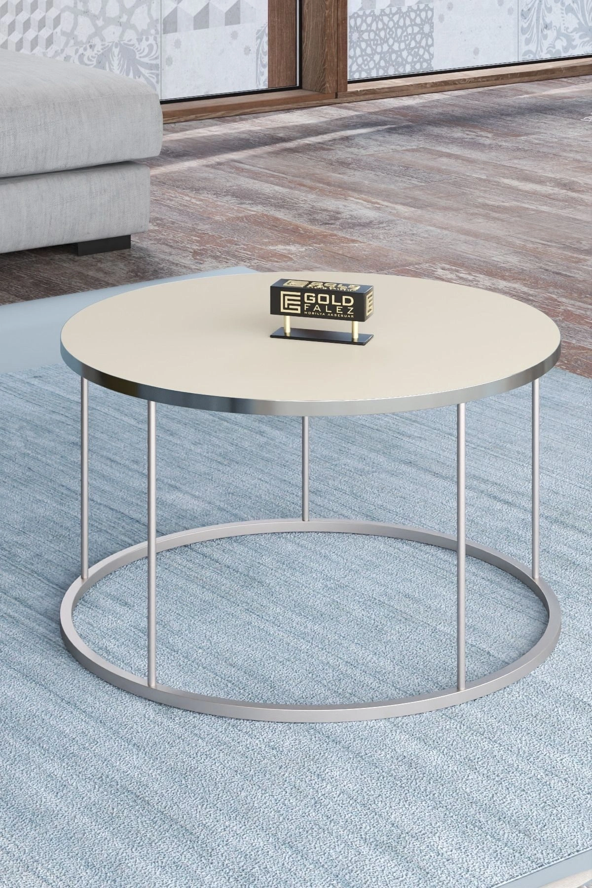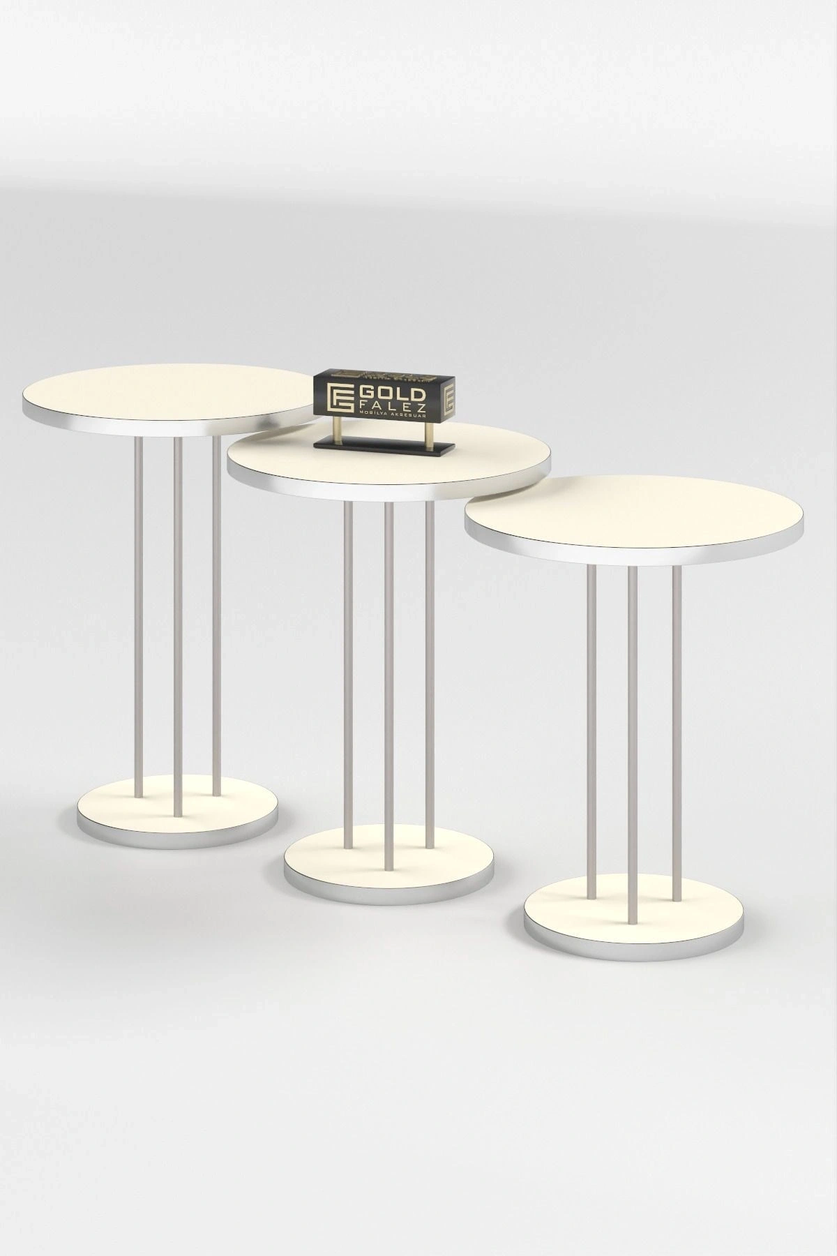 ORTA SEHPA VE ZİGON SEHPA TERRA SET GÜMÜŞ KREM