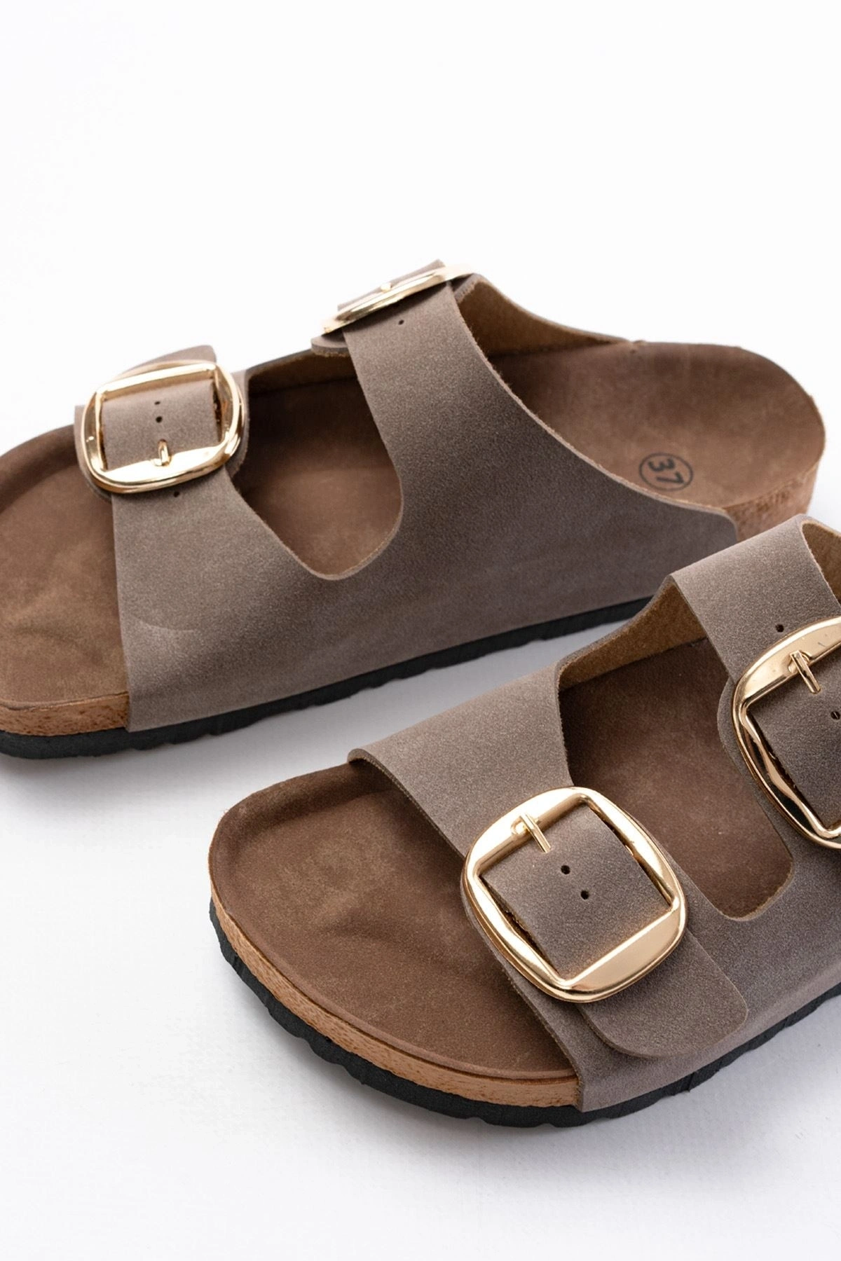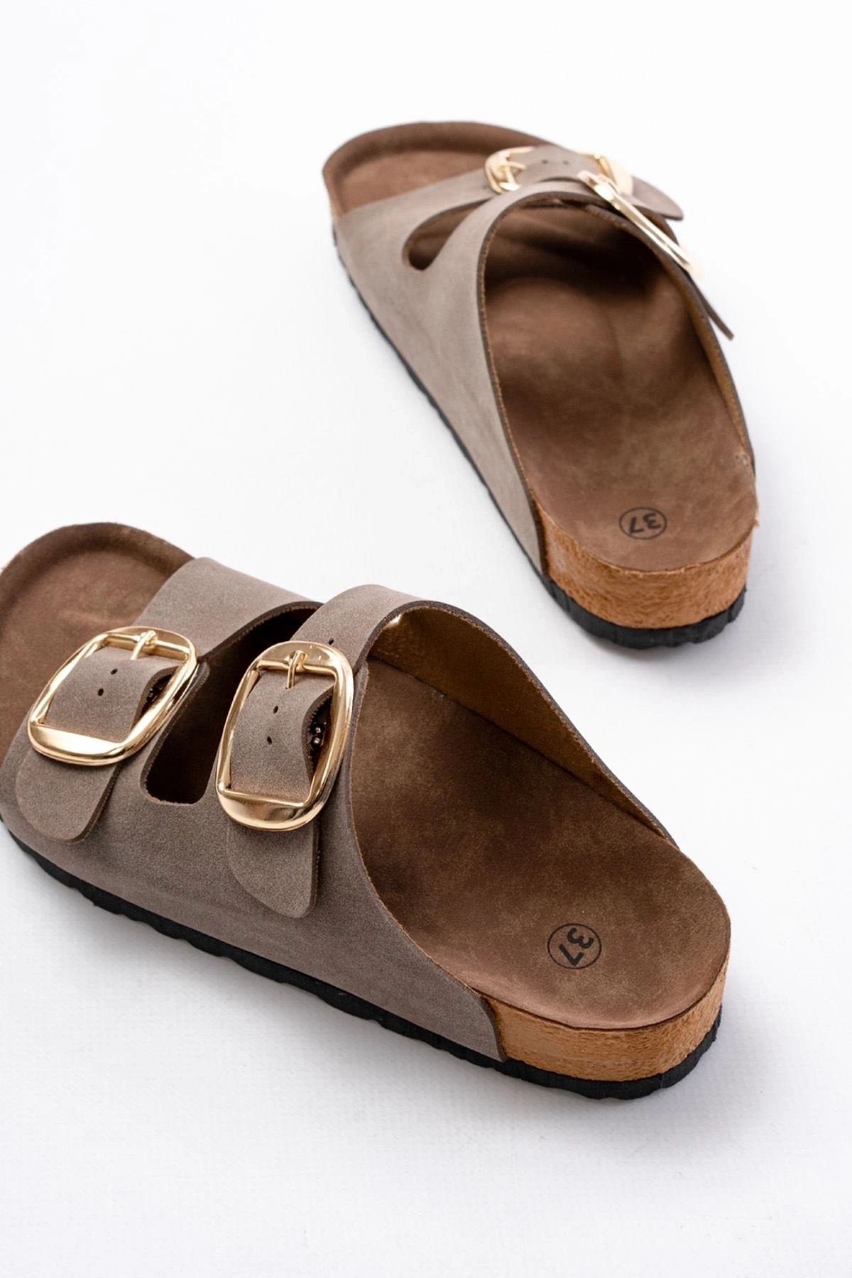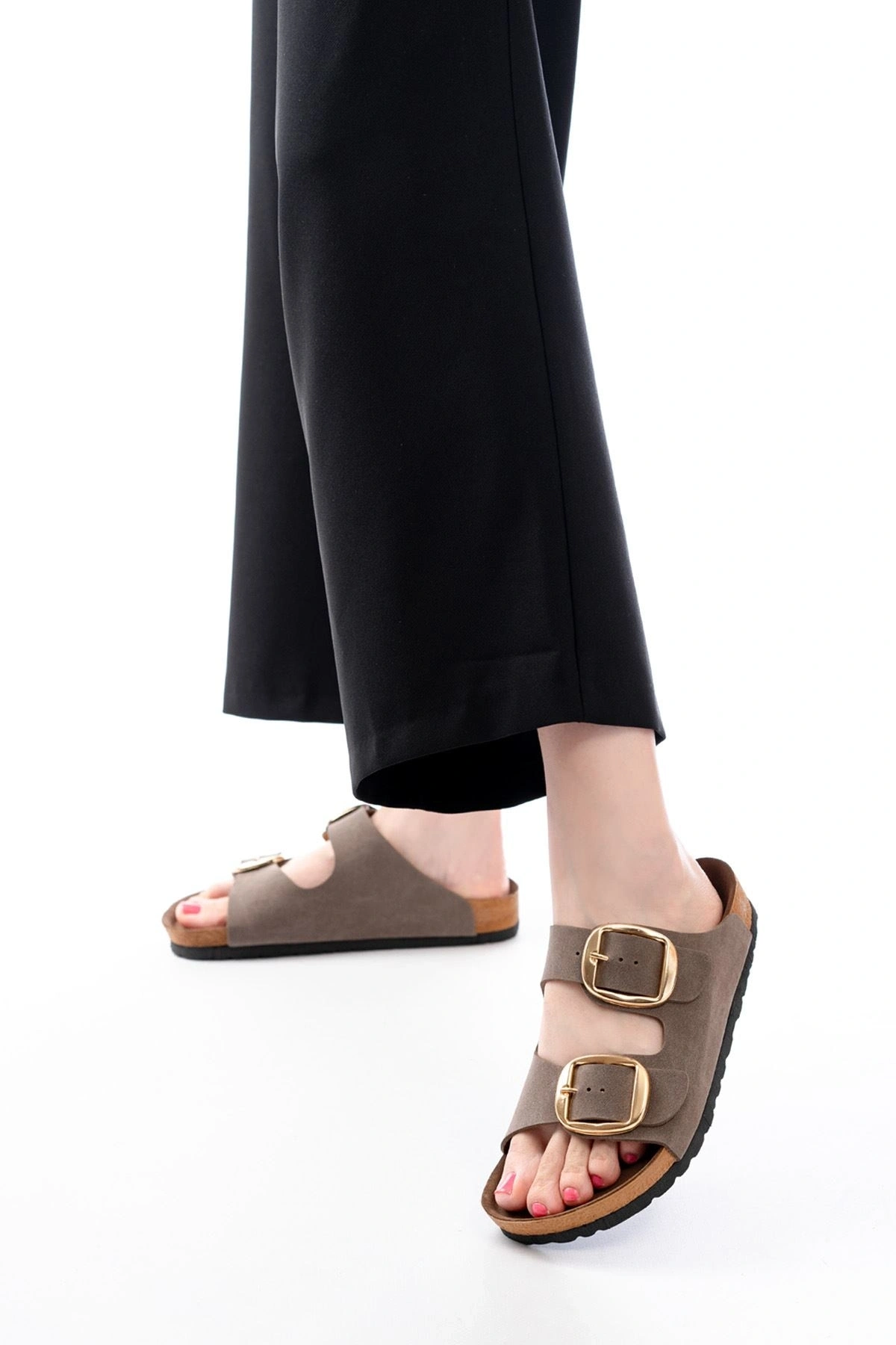 169-076 Taba Ortopedik Hakiki Deri Çapraz Bantlı Kadın Terlik