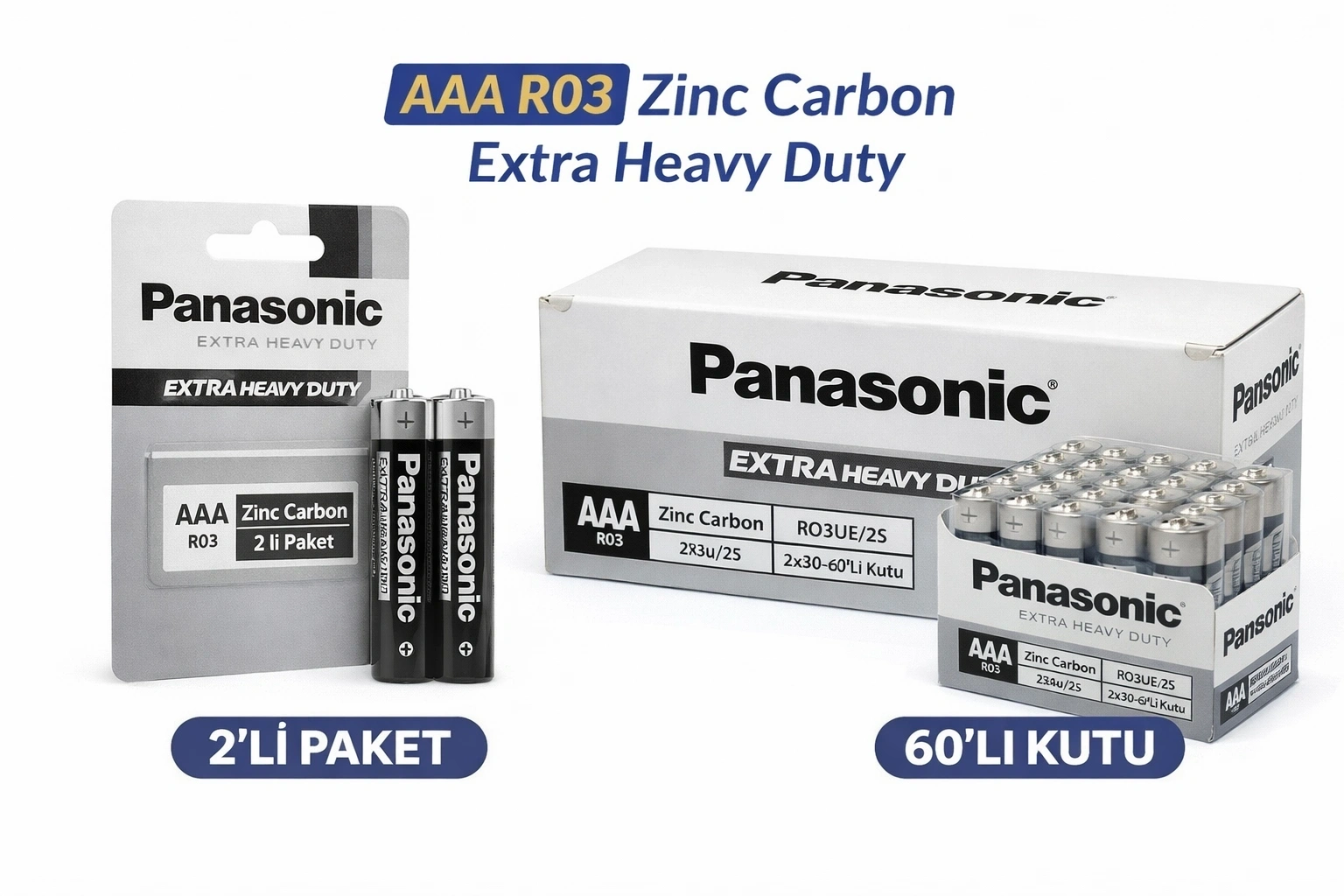 Panasonic AAA R03 İnce Pil Zinc Carbon Extra Heavy Duty 2’li 1 Paket