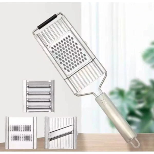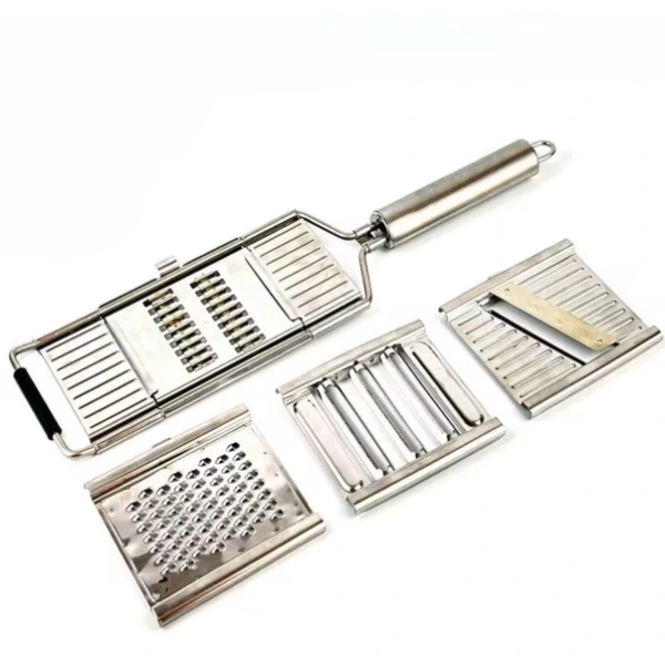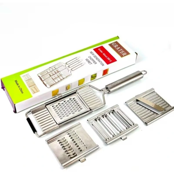 PASLANMAZ ÇELİK 4'LÜ SET EL RENDESİÜrün ÖzellikleriMutfakta zamandan tasarruf sağlayan paslanmaz çelik 4’lü set el rendesi, hem dayanıklı yapısı hem de çok yönlü kullanımı ile dikkat çeker. Yüksek kaliteli paslanmaz çelikten üretilmiş olması sayesinde uzun ömürlü kullanım sunar ve paslanmaya karşı dirençlidir. Ergonomik tutma sapı elden kaymayı önleyerek güvenli bir kullanım sağlar. Set içerisinde yer alan farklı başlıklar sayesinde sebze, meyve, peynir, havuç, salatalık gibi birçok ürünü kolayca dilimleyebilir, rendeleyebilir veya jülyen kesebilirsiniz. Pratik şekilde değiştirilebilen başlıklar, mutfakta ihtiyaca göre hızlı çözümler sunar. Temizliği son derece kolay olan ürün, elde veya bulaşık makinesinde yıkanabilir. Hem profesyonel mutfaklar hem de ev kullanımı için idealdir.Paket İçeriği1 adet Paslanmaz Çelik 4'lü Set El Rendesi