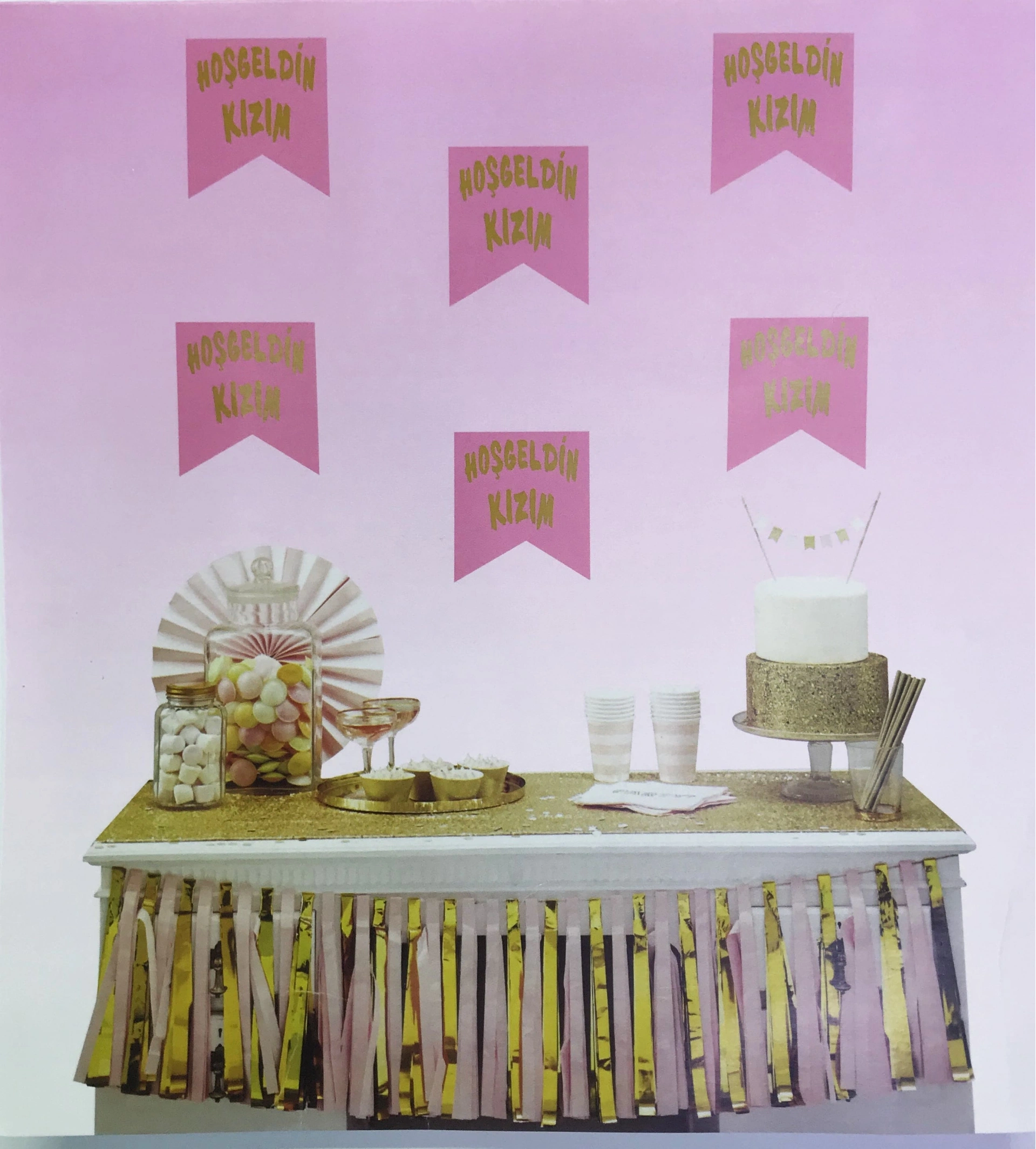 Pembe Üzeri Altın Hoşgeldin Kızım Flama Süs