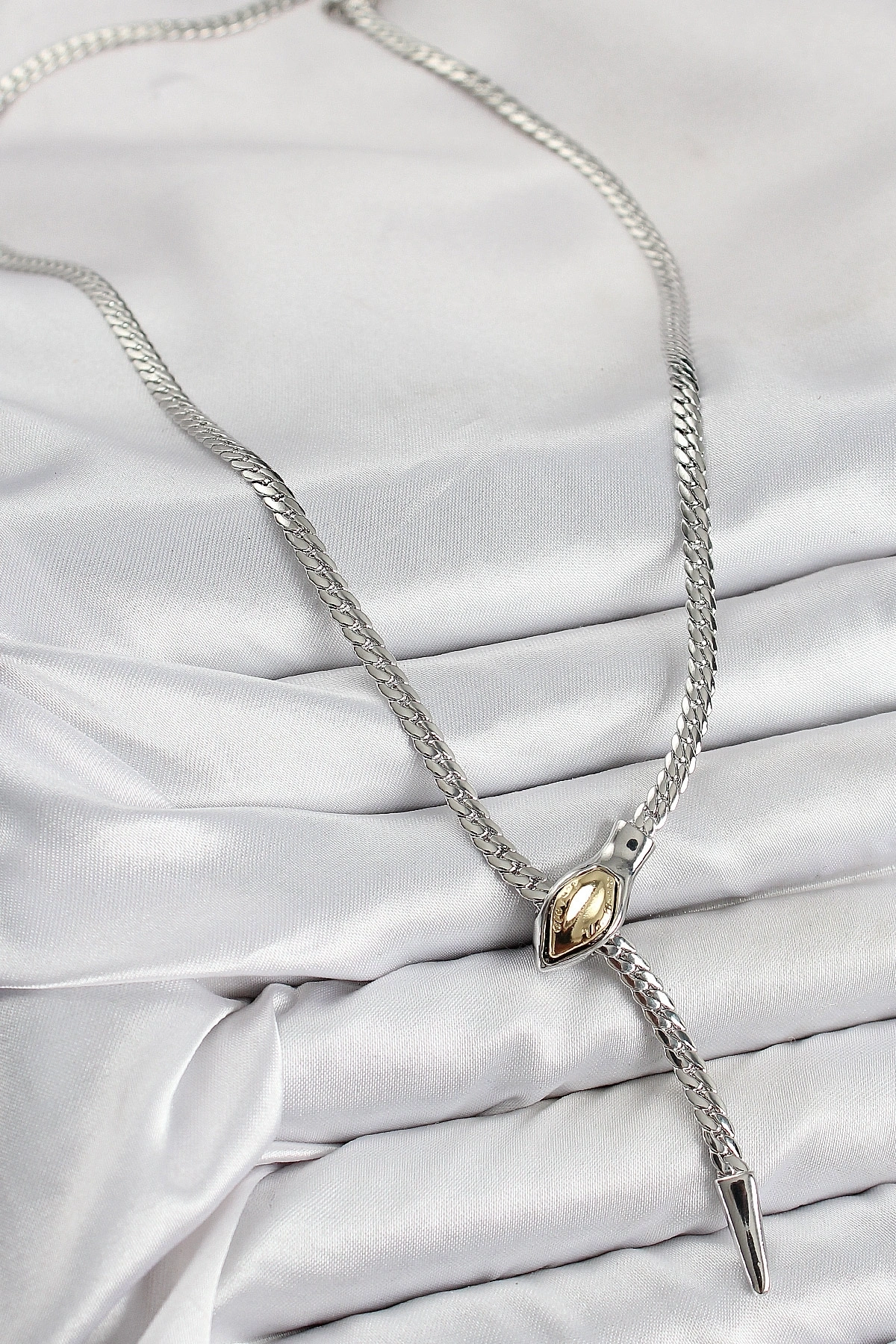 Pirinç Asansörlü Yılan Model Gümüş Renk Kadın Kolye