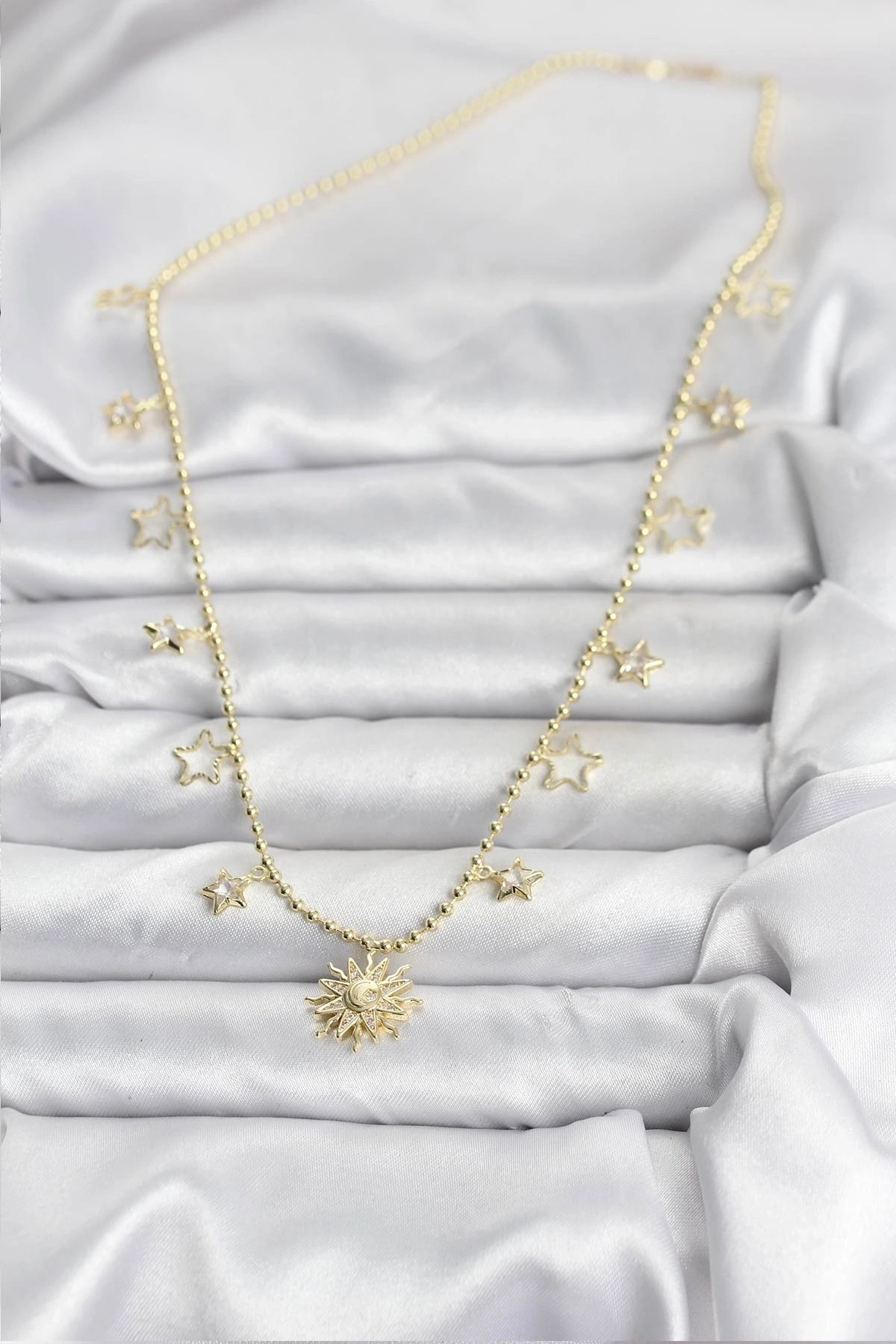 Pirinç Gold Renk Güneş Model Kadın Kolye
