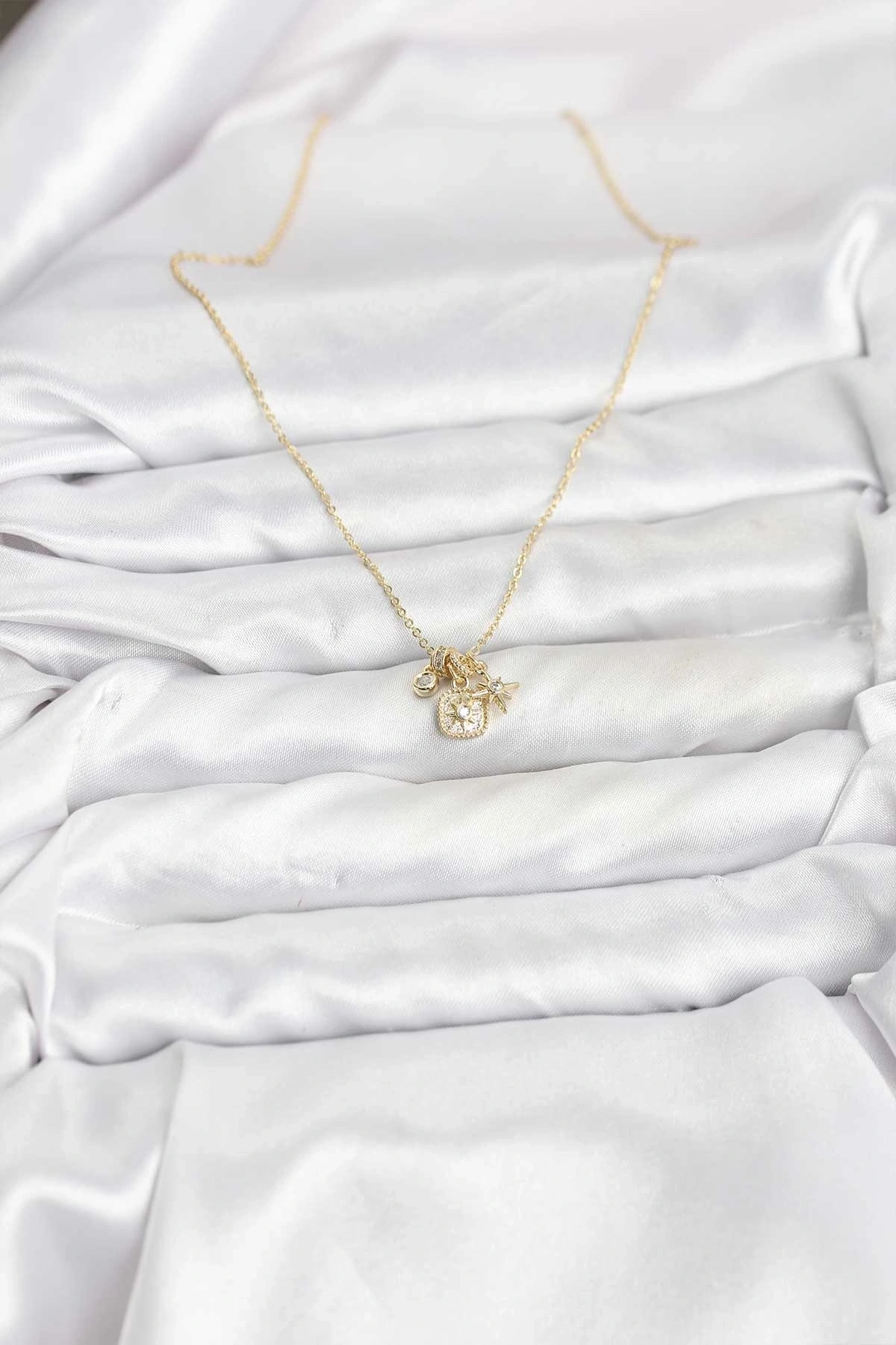 Pirinç Gold Renk Minimal Charmlı Kadın Kolye