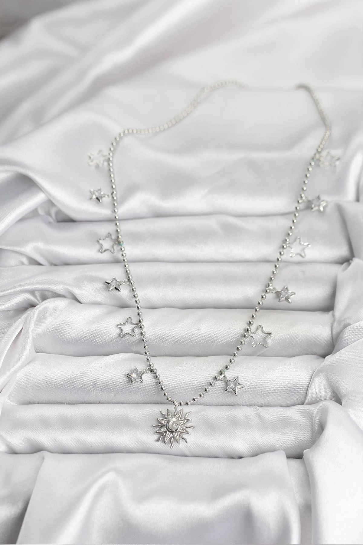 Pirinç Gümüş Renk Güneş Model Kadın Kolye