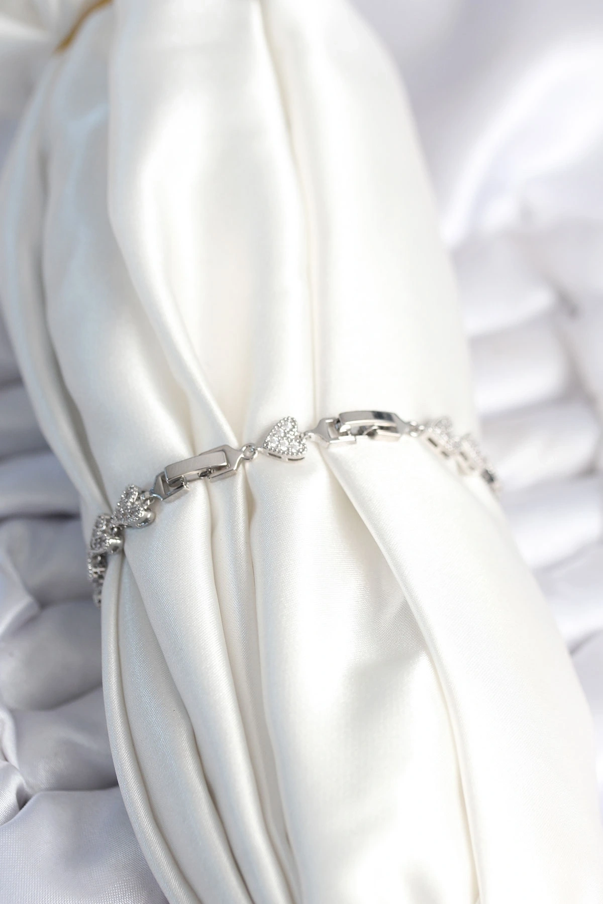 Pirinç Gümüş Renk Kalp Model Kadın Bileklik