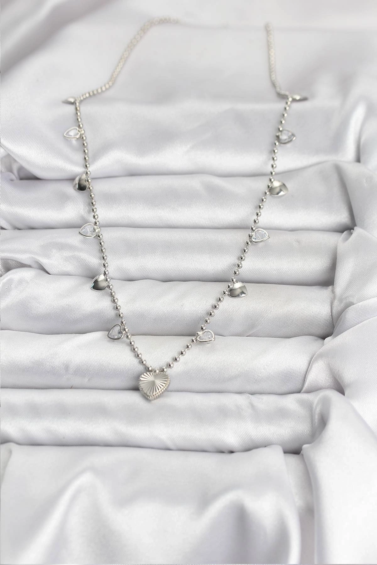 Pirinç Gümüş Renk Kalp Model Kadın Kolye