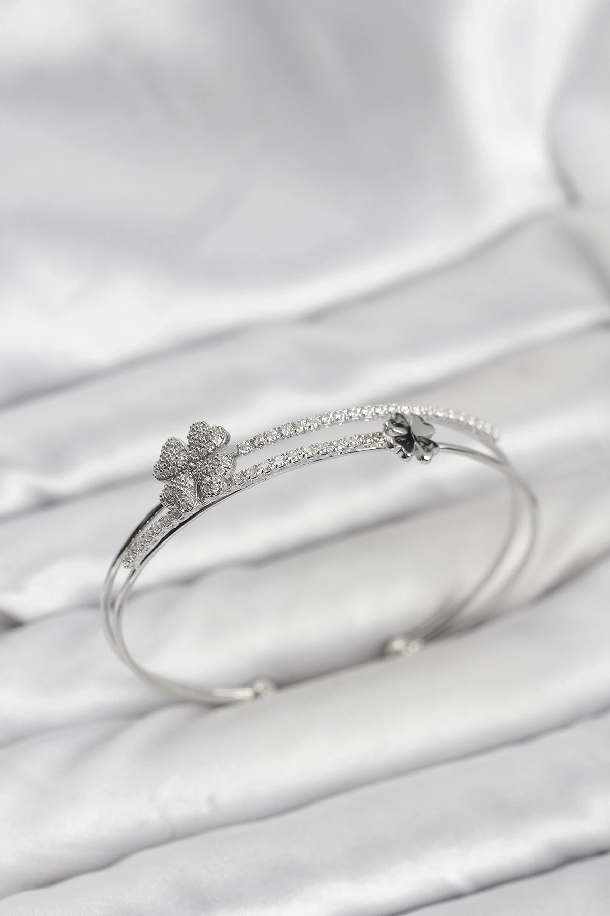 Pirinç Gümüş Renk Yonca Model Kadın Bileklik