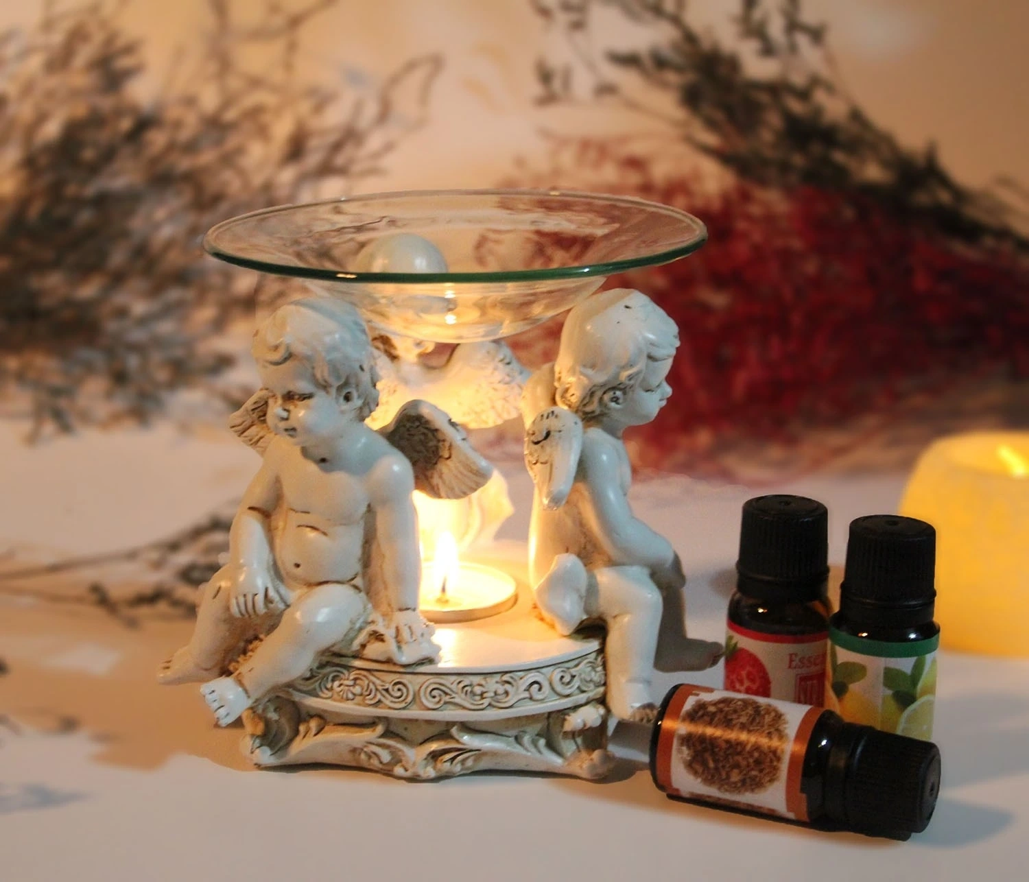 POLYESTER MELEKLİ BUHURDANLIK MODEL 3Ürün ÖzellikleriPolyester Melekli Buhurdanlık Model 3, dua eden melek figürlerinden oluşan zarif tasarımıyla hem dekoratif hem de fonksiyonel bir üründür. Cam kısmına yerleştirilen tütsü veya esans yağlarıyla, mekânınızdaki havayı tazeleyebilir ve huzurlu bir atmosfer yaratabilirsiniz. Bu şık ve ruhani tasarım, hem estetik hem de manevi bir dokunuş sağlar, evlerde, ofislerde ve özel alanlarda kullanılabilir.Paket İçeriği1 adet Polyester Melekli Buhurdanlık Model 3