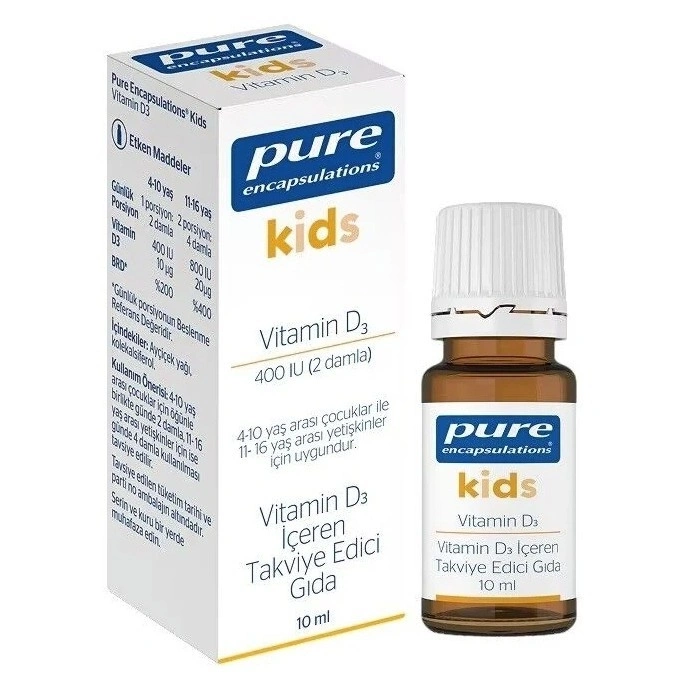 Pure Encapsulations® Kids Vitamin D3 10 ML Damla içeriğindeki D3 vitamini;