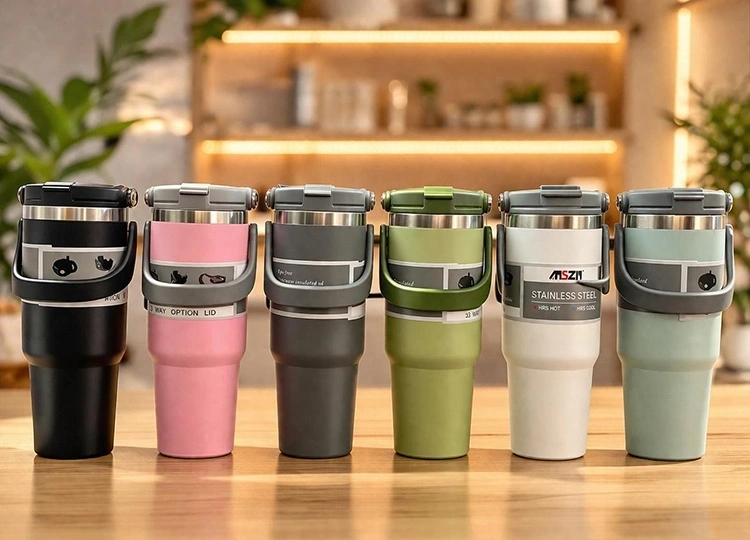 Renkli 700 ml Taşıma Kulplu Paslanmaz Çelik Termos Mug Bardak