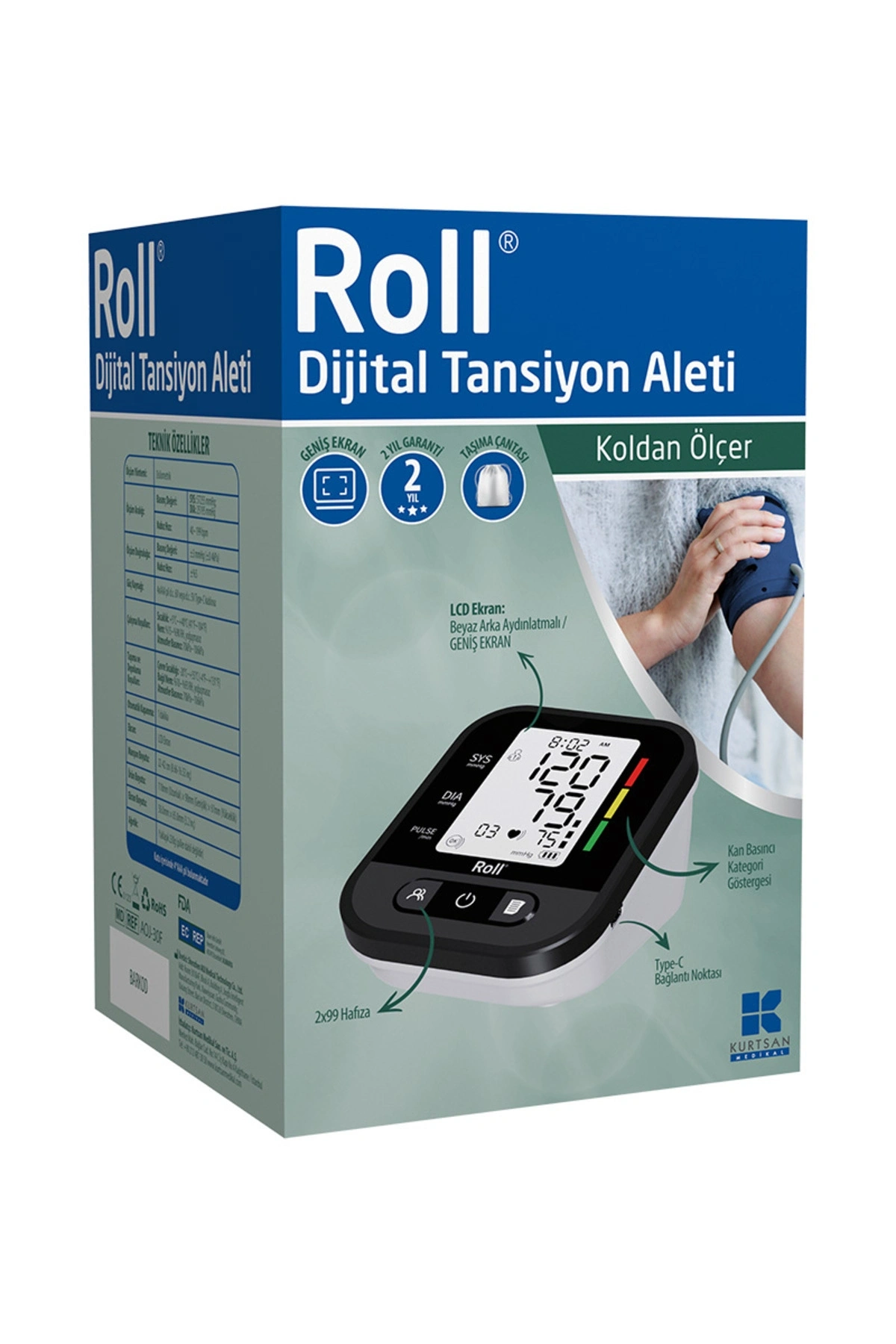 ROLL Dijital Tansiyon Aleti, koldan tam otomatik ölçüm özelliği ile kolay ve güvenilir kullanım sağlar.