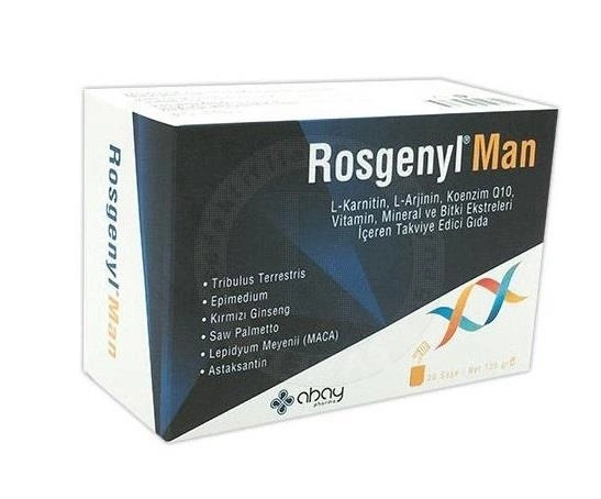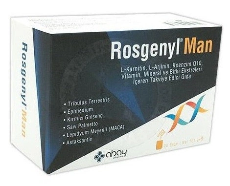 Rosgenyl Man 30 Saşe, erkeklere özel olarak formüle edilmiş bir takviye edici gıdadır. Genellikle erkek üreme sağlığına destek olmak amacıyla kullanılan kompleks bir içeriğe sahiptir.