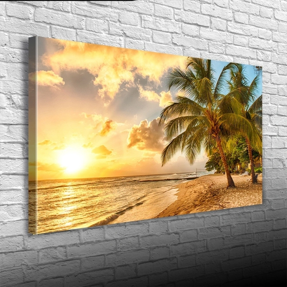 Sahilde Palmiyeler ve Günbatımı Kanvas Tablo 60 x 120