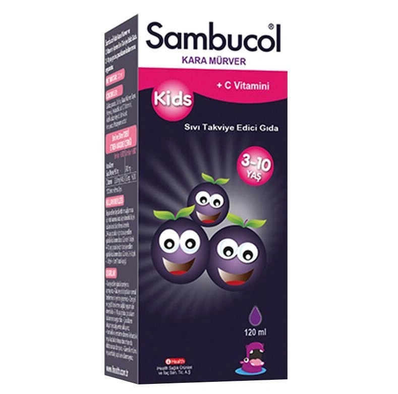 Sambucol Kids Kara Mürver ve C Vitamini İçeren Takviye Edici Gıda.
