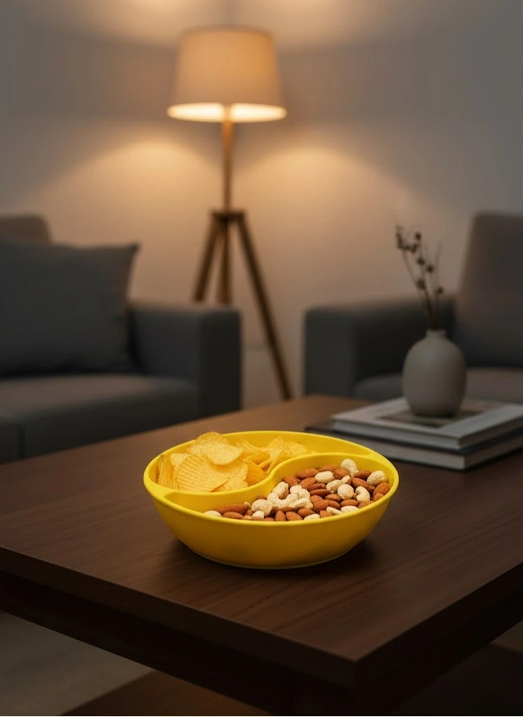 4 adet sarı çerezlik kase seti, günlük atıştırmalık sunumlarını daha düzenli ve keyifli hale getirmek için idealdir. 3x12 cm ölçüsündeki kaseler, çerez, kuruyemiş ve benzeri ikramlar için uygun boyuttadır. Set halinde sunulması, birden fazla kişiye servis yapmayı kolaylaştırır.Bölmeli yapısı sayesinde farklı atıştırmalıklar aynı kase içinde düzenli bir şekilde sunulabilir. Bu özellik, özellikle misafir ağırlarken pratiklik sağlar. Sarı rengi, masa üzerinde sıcak ve enerjik bir atmosfer oluşturur.Salon masası, sehpa veya raf üzerinde rahatlıkla kullanılabilir. Hem günlük çay saatlerinde hem de özel günlerde sofranıza renk katar. Hafif ve kullanışlı yapısı ile kolayca taşınır ve pratik bir deneyim sunar.Şık, kullanışlı ve dekoratif bir çerezlik seti arayanlar için ideal bir tercihtir. Aynı zamanda ev hediyesi olarak da değerlendirilebilecek kullanışlı bir üründür.