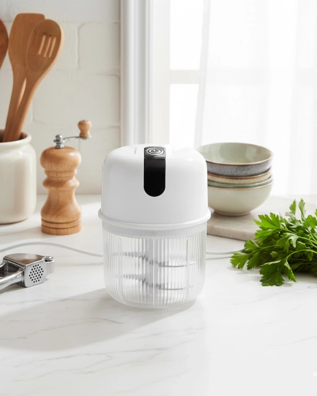 Elektrikli sarımsak ezici, modern mutfakların ihtiyaçlarına cevap verecek şekilde tasarlanmıştır. Hafif ve taşınabilir yapısı ile her mutfakta rahatlıkla kullanılabilir. USB şarjlı 1300 mAh bataryası uzun ömürlü kullanım sunar.Tek tuşla çalışma sistemi sayesinde zahmetsiz kullanım sağlar. Paslanmaz çelik bıçak ile hızlı ve etkili doğrama yapılır. 250 ml haznesi ile günlük yemek hazırlıkları için idealdir.Güvenlik kapağı, motorun zarar görmesini önler. Temizliği kolaydır ve hijyenik kullanım sağlar. Pratik, güvenli ve fonksiyonel bir mutfak yardımcısıdır.