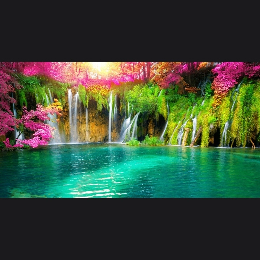 Şelale ve Göl Resmi Kanvas Tablo 60 x 120