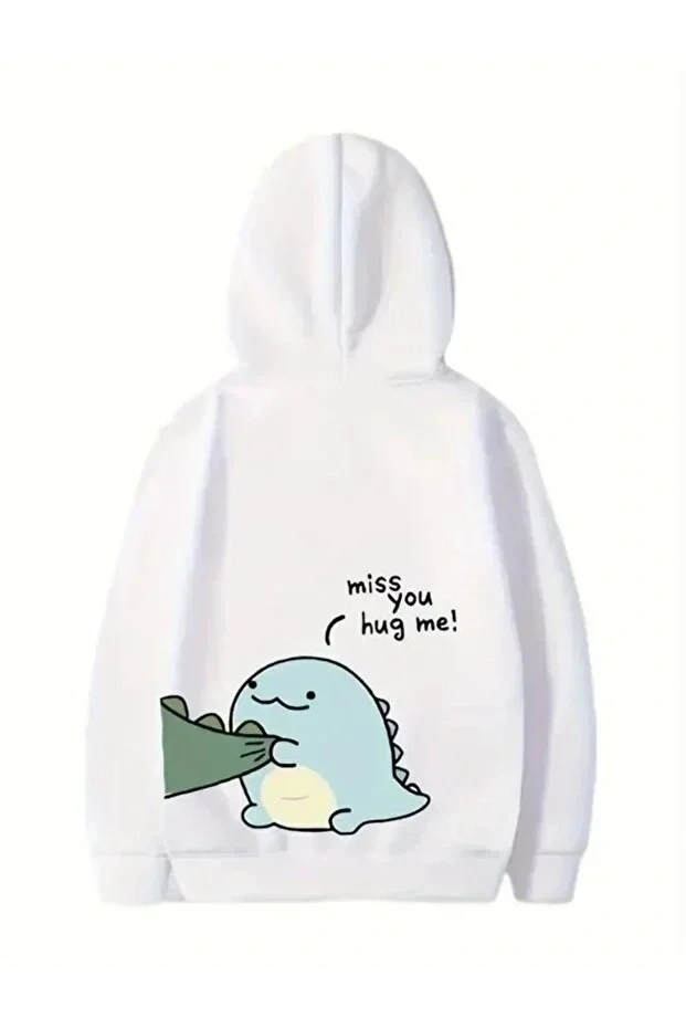Sevgililer Günü Özel Unisex Kapüşonlu Baskılı Oversize Sweatshirt - Beyaz
