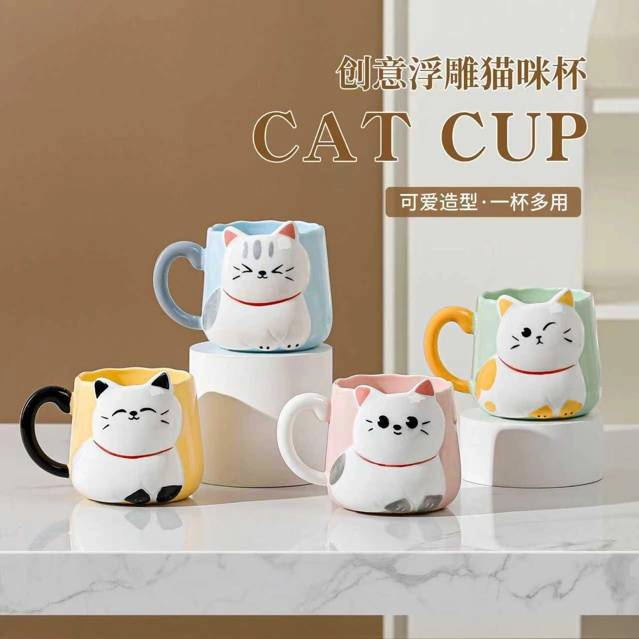 Kedi Desenli Figürlü Seramik Bardak