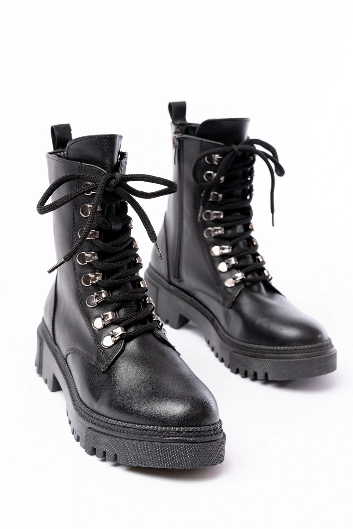 812-2121 Siyah Cilt Bağcıklı Fermuarlı Günlük Kadın Bot