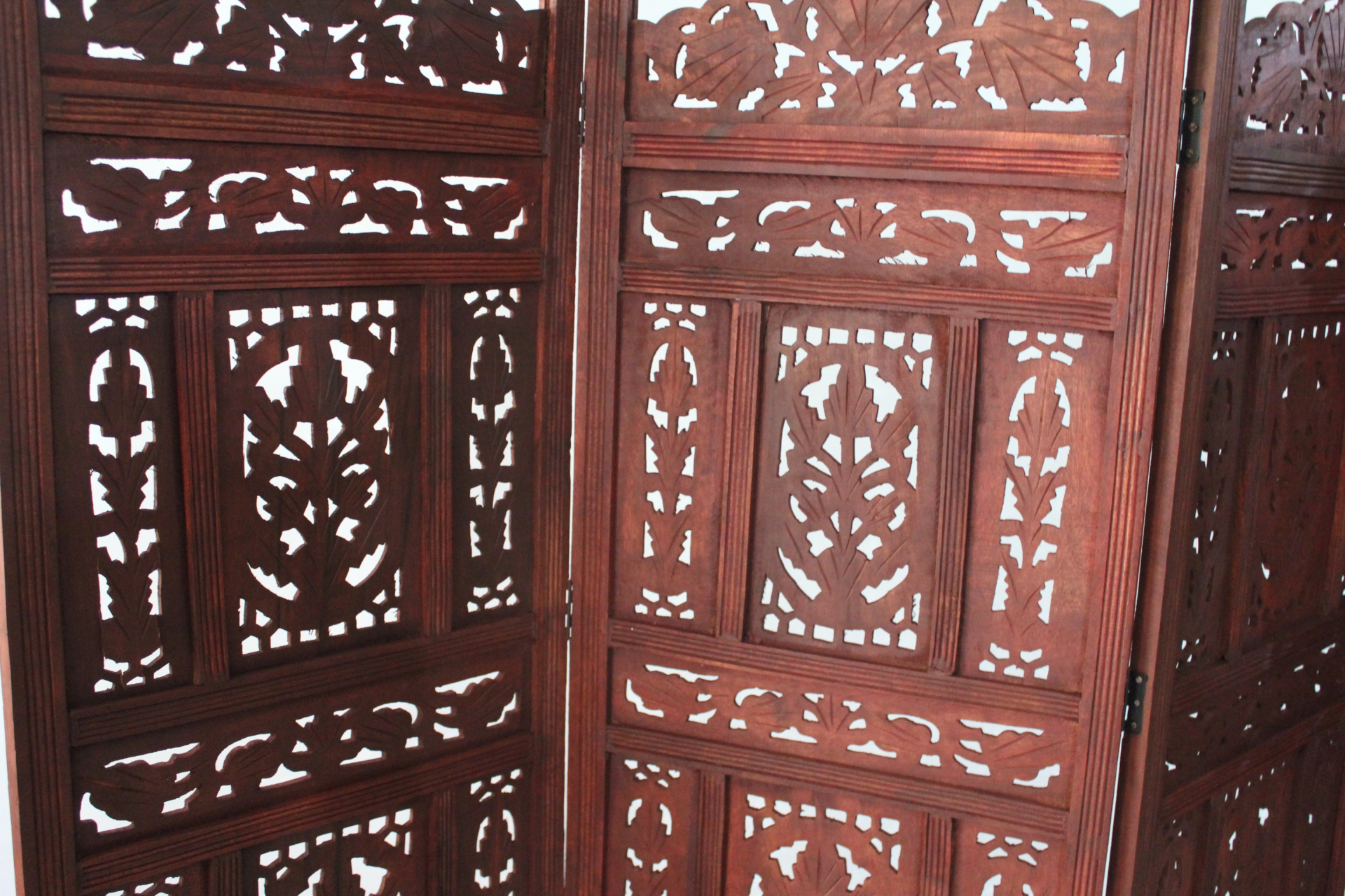 AHŞAP MAUN RENGİ EL OYMASI PARAVANÜrün ÖzellikleriMaun rengi ve el oyması detaylarıyla zarif bir tasarıma sahip olan bu paravan, yaşam alanlarınıza estetik bir dokunuş katar. 180×200 cm boyutundadır ve dayanıklı ahşap malzemeden üretilmiştir. Hem dekoratif hem de işlevsel olan bu paravan, odalar arasında bölme yaparak alan tasarrufu sağlar. Şık ve modern tarzı ile hem klasik hem de çağdaş dekorasyonlara uyum sağlar. Ayrıca, kolayca katlanabilmesi sayesinde depolama açısından da kullanışlıdır.Paket İçeriği1 Adet Ahşap Maun Rengi El Oyması Paravan