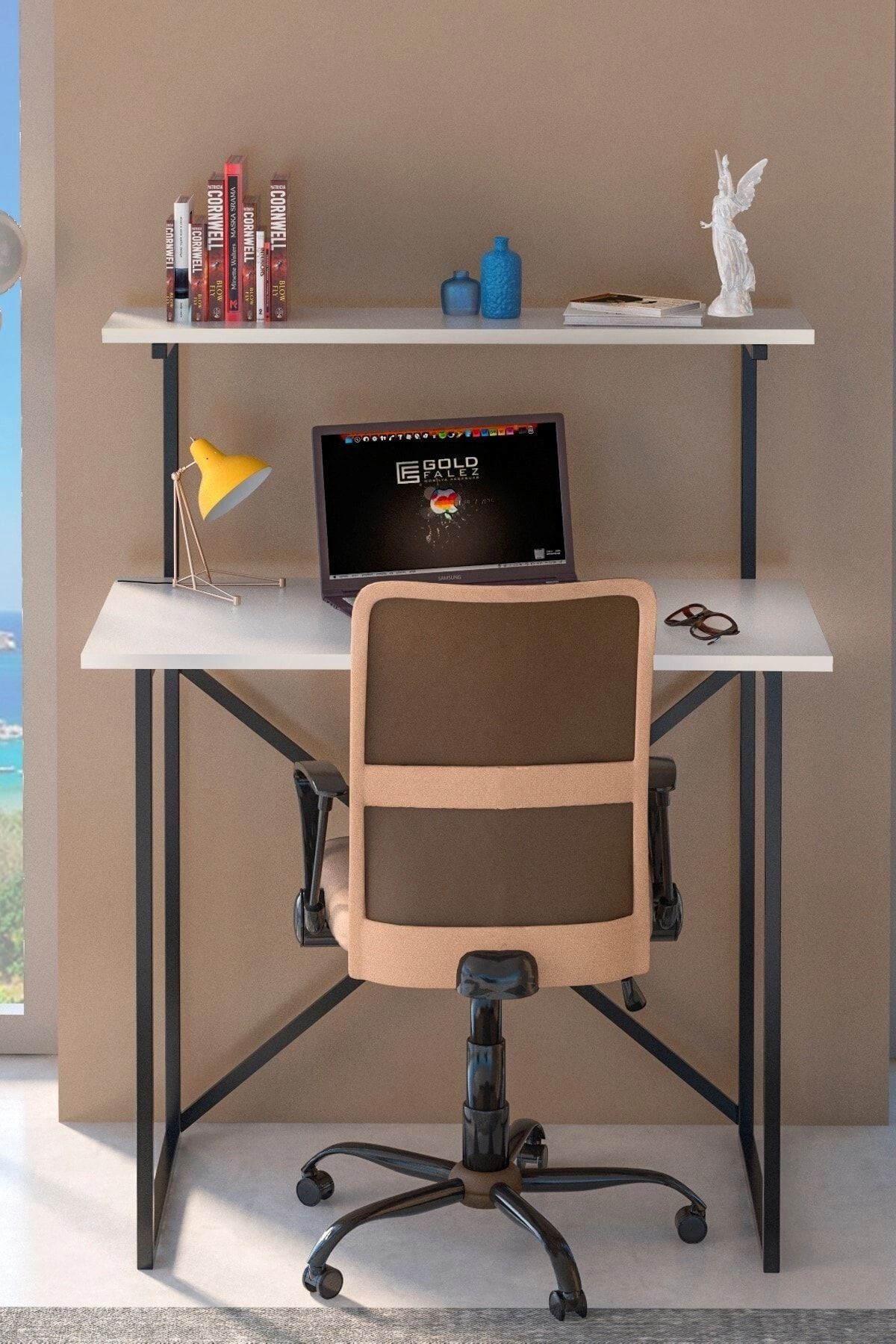 Çalışma Masası Raf Kitaplık Çok Amaçlı Ofis Masa Beyaz