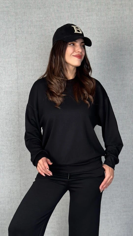 Kadın Uzun Kollu Bisiklet Yaka Viskon Iki Iplik Bluz Ve Pantolon Ikili Takım