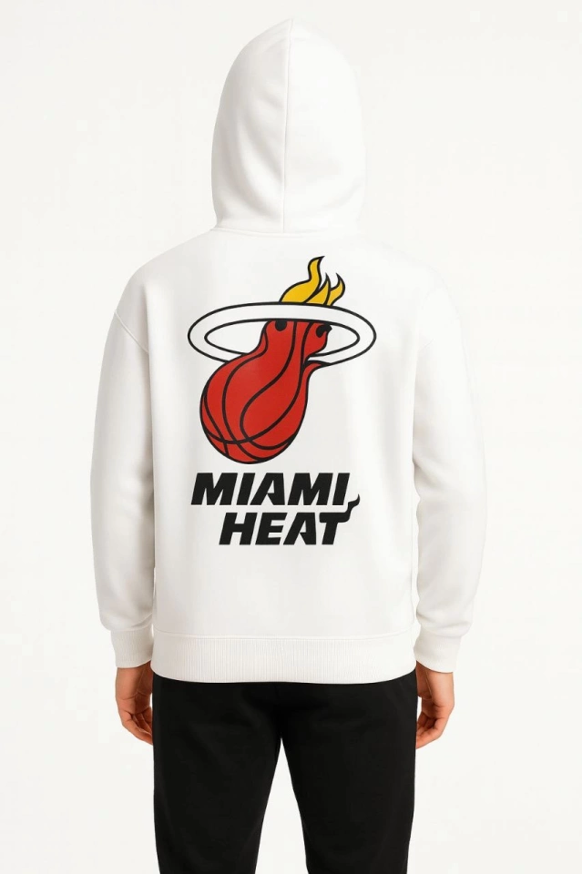 Üç İplik Kapüşonlu Ön Ve Arka Baskılı SweatShirt Hoodie – Beyaz