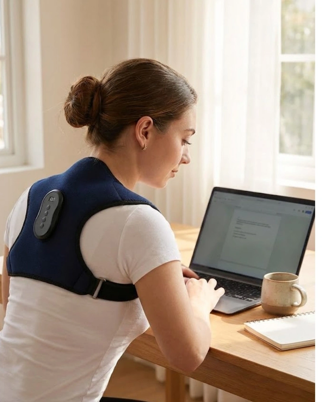 Akıllı sırt destek kemeri, postür bozukluklarını azaltmaya yardımcı olmak için tasarlanmıştır. Omurganın doğal eğimini destekleyen ortopedik yapısı, sırt ve omuz bölgesinde oluşan baskıyı dengeler. Yanlış duruş algılandığında titreşimli uyarı ile kullanıcıyı bilinçlendirir.Masaj ve ısı terapisi özellikleri sayesinde sadece destek değil aynı zamanda rahatlatıcı bir kullanım sunar. Isı ayarları kasların gevşemesini desteklerken masaj fonksiyonu günlük yorgunluğu azaltmaya yardımcı olur.Nefes alabilen kumaşı ve hafif yapısı sayesinde uzun süreli kullanımlarda bile konfor sağlar. Günlük yaşamın temposunda duruşunu korumak isteyenler için pratik ve fonksiyonel bir çözümdür.