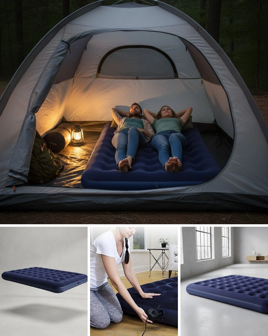 Çok amaçlı kullanım için tasarlanan bu çift kişilik şişme yatak, kamp ve ev içi ihtiyaçlar için ideal bir tercihtir. Dayanıklı vinil gövde, uzun ömürlü kullanım sunarken flokeli yüzey konforu artırır. Sarmal kirişli iç yapı, dengeli ve rahat bir yatış sağlar.Vidalı vana sistemi ile hızlı şişirilip indirilebilir. Az yer kaplayan yapısı sayesinde kolayca saklanır. Konforlu, sağlam ve pratik bir uyku çözümü arayanlar için uygundur.