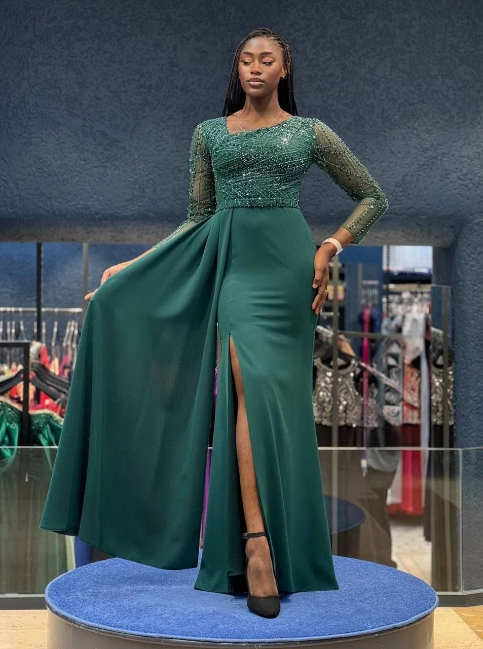 Yeşil Payet Detaylı Abiye Elbise