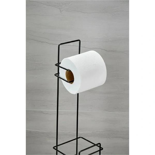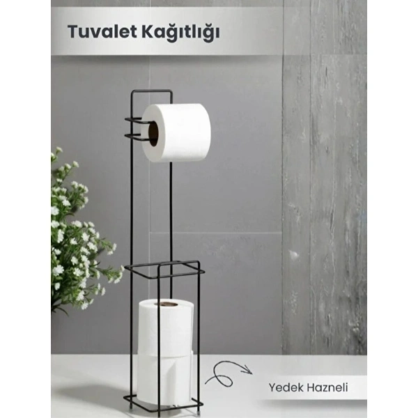 Siyah Standlı Yedek Hazneli Tuvalet Kağıtlığı