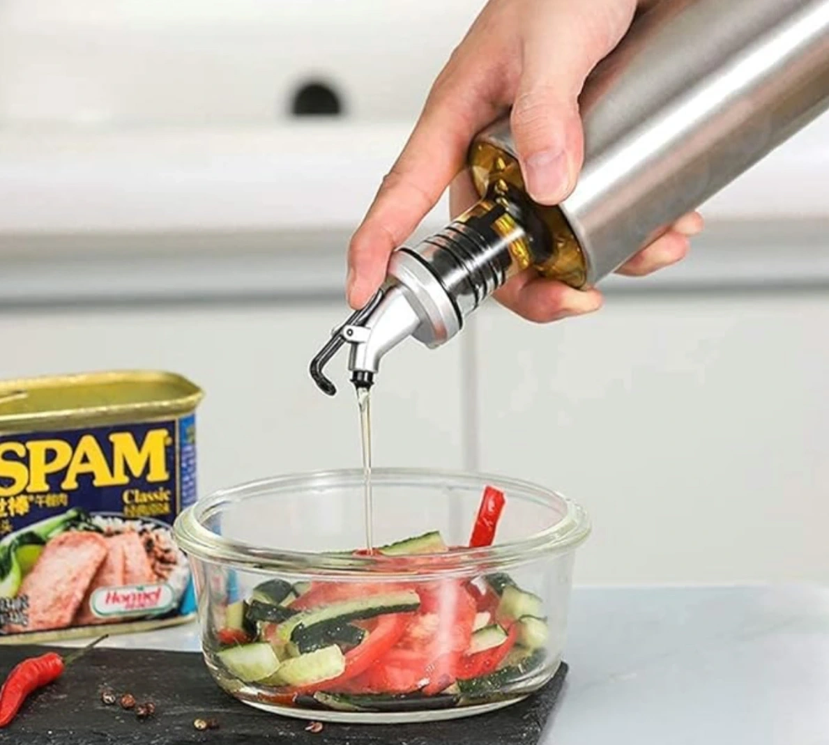 SIZDIRMAZ YAĞDANLIKBu sızdırmaz yağdanlık, kalınlaştırılmış cam şişe tabanıyla sağlam bir zemin sunar. İtmeli tip başlığı, yağın kolay ve kontrollü bir şekilde dökülmesini sağlar, bu da mutfakta kullanımını kolaylaştırır. 350 ml kapasitesiyle yeterli miktarda yağı depolayabilir. İç katmanı borosilikat camdan üretilmiş, dış katman ise paslanmaz çelikle çevrilidir, bu da ürünü sağlıklı ve dayanıklı kılar. Şık tasarımı ve kullanım kolaylığıyla mutfakta pratik bir yardımcıdır.Paket İçeriği1 adet sızdırmaz yağdanlık