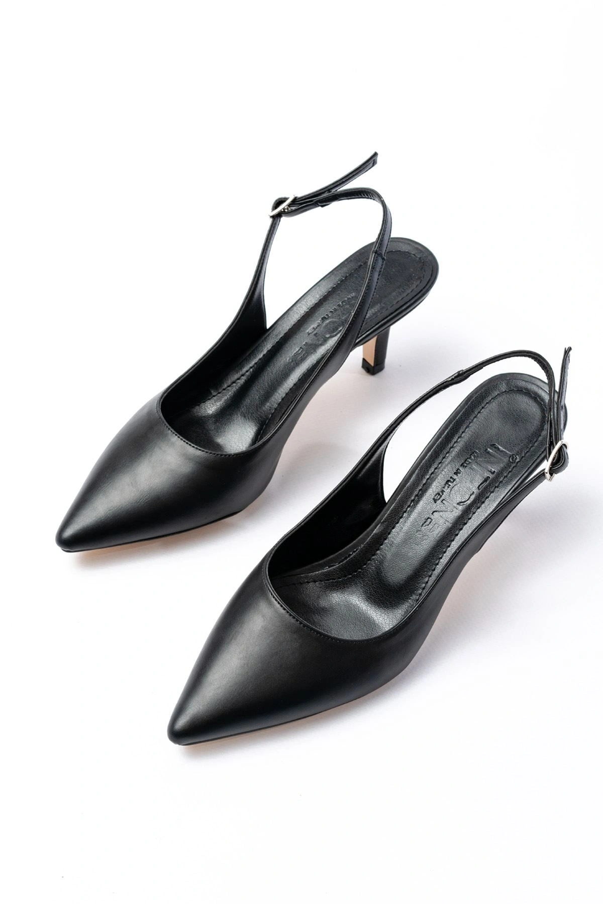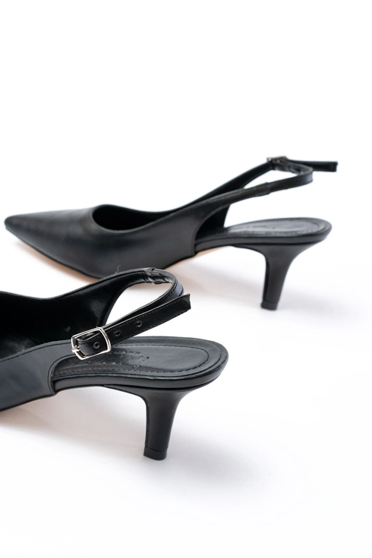 İNF-4505 Siyah Saten Günlük Arkası Açık Kurdele detaylı Topuklu Bayan Ayakkabı