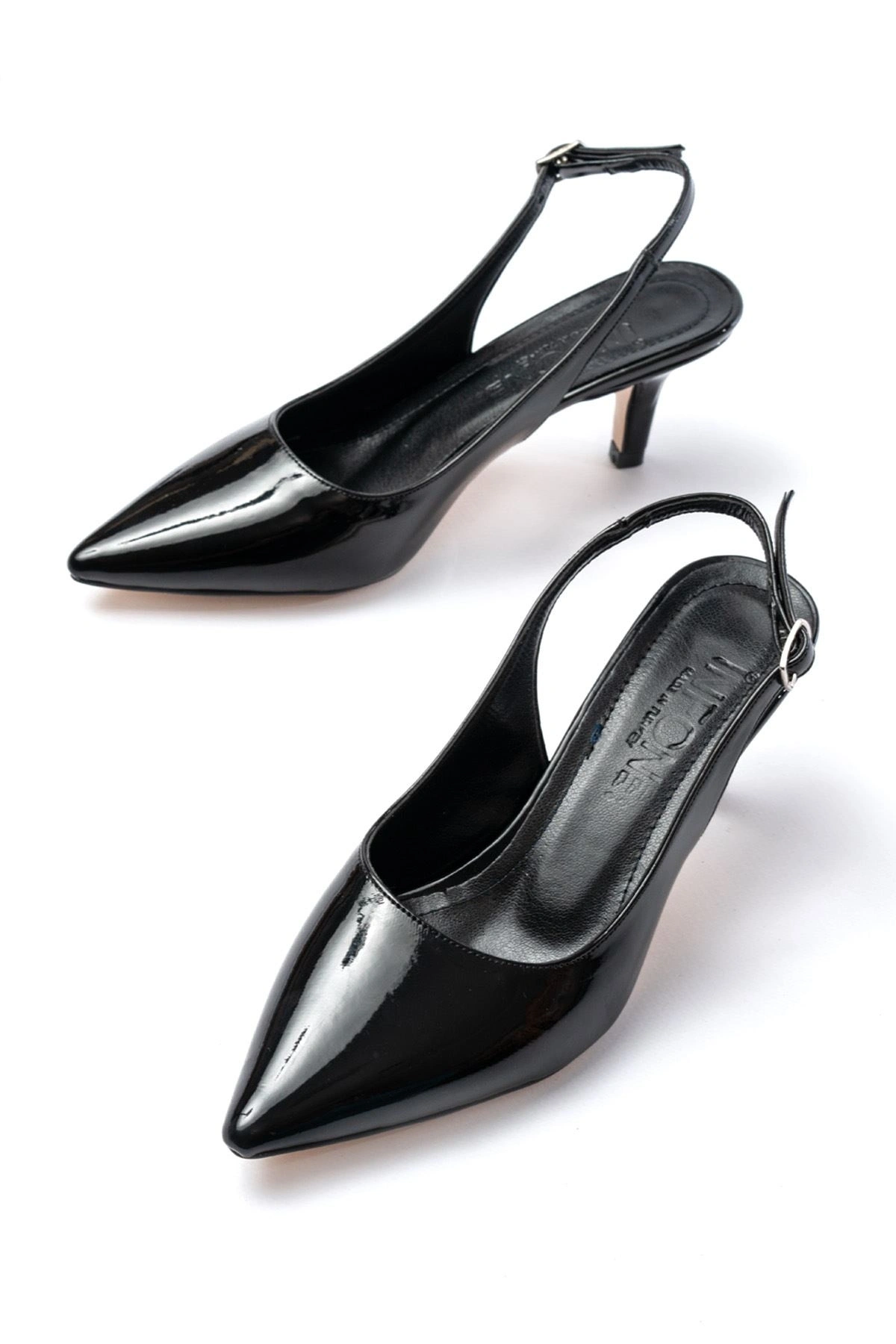 ST-1152 Siyah Rugan Günlük 7 cm Topuklu Kadın Ayakkabı