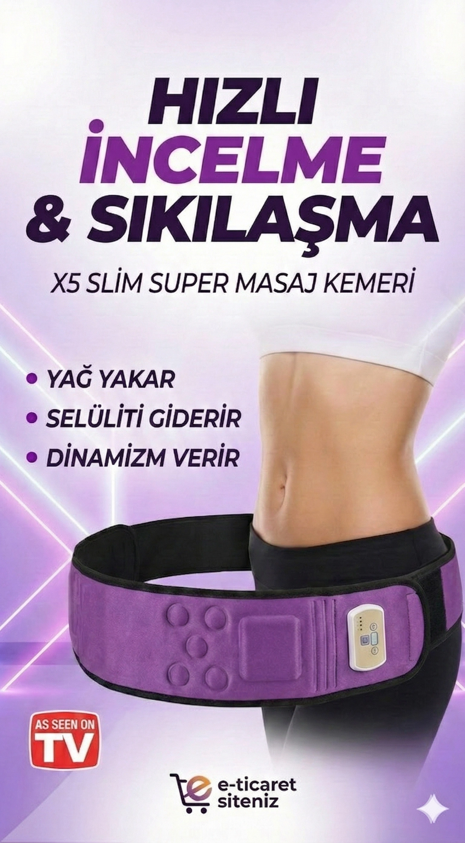 X5 Super Slim 5Motorlu Titreşimli Masaj Kemeri Göbek Eritme Aleti Ürün Özellikleri: Unisex bay ve bayan kullanabilir. Sade Tasarım Kumandası İle Rahat Kullanım İmkanı Sunmaktadır. 2 Fonksiyon Titreşim Gücü 2 Ayrı Çalışma Modu İle İster Masaj İster Zayıflama Kemeri Olarak Kullanabilme İmkanı İhtiyacınıza Uygun Bölgelerde Kullanılması Durumunda Sindirime ve Rahatlatıcı Çalışma Mantığı Sayesinde Kas Yorgunluğunuzu Azaltmaya Yardımcı Olur Sırt, bel, omuz, baldır ve daha birçok bölgede kullanabilirsiniz, Günde sadece 10 Dk. ayırmanız yeterli