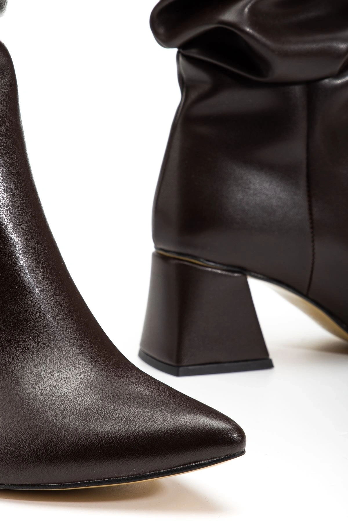 SYT-2002 Kahve Körüklü Kalın Topuklu Günlük Bayan Çizme