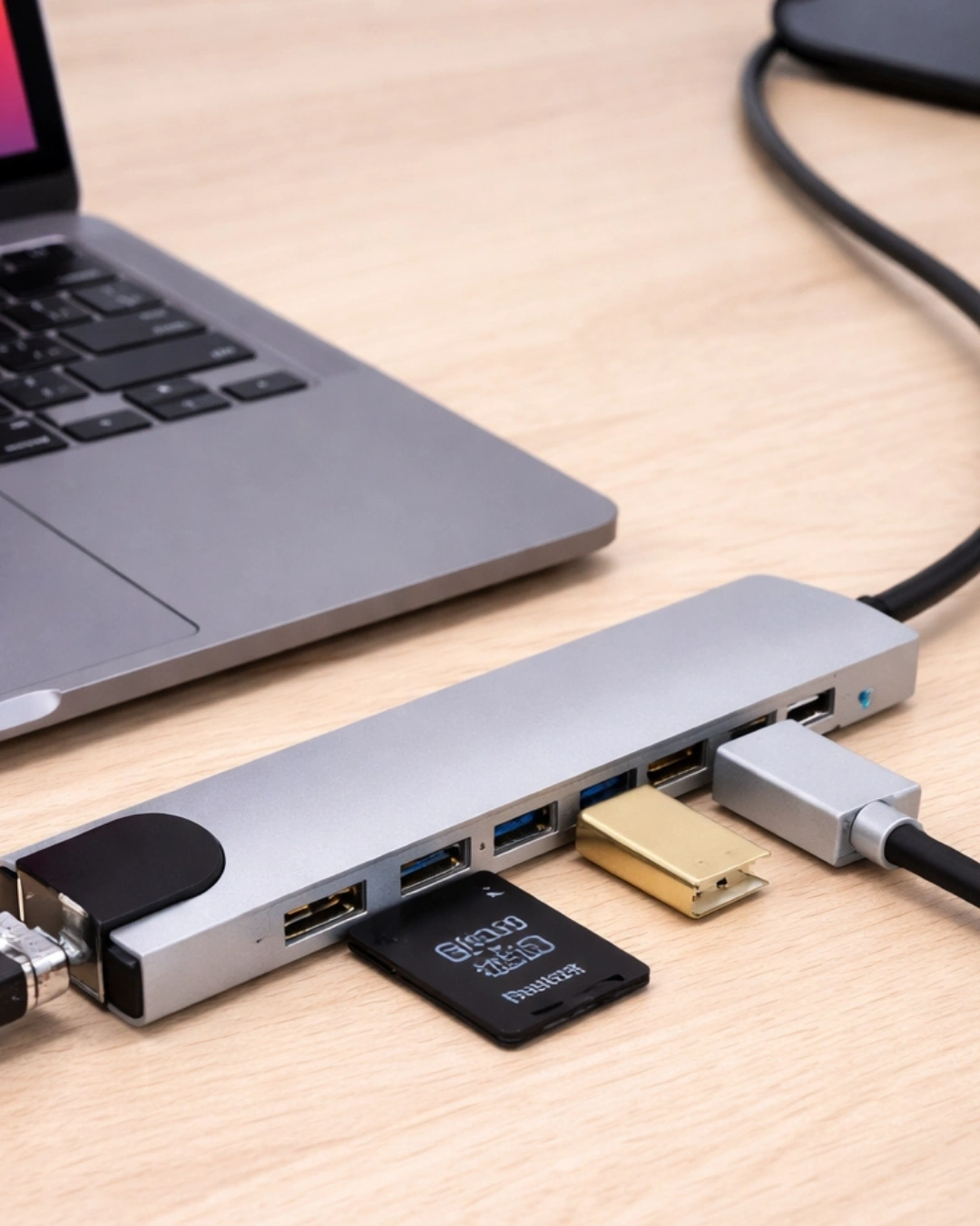 Çok fonksiyonlu Type-C hub, laptop ve tablet kullanıcıları için geliştirilmiş pratik bir bağlantı çözümüdür. Birden fazla bağlantı noktası sayesinde farklı cihazları aynı anda kullanmanıza imkan tanır.HDMI çıkışı sayesinde harici monitör veya televizyona görüntü aktarımı yapılabilir. USB portları sayesinde klavye, mouse, USB bellek ve diğer çevre birimleri kolayca bağlanabilir.Ethernet bağlantı noktası sayesinde kablolu internet bağlantısı sağlayarak daha stabil internet kullanımı elde edebilirsiniz.