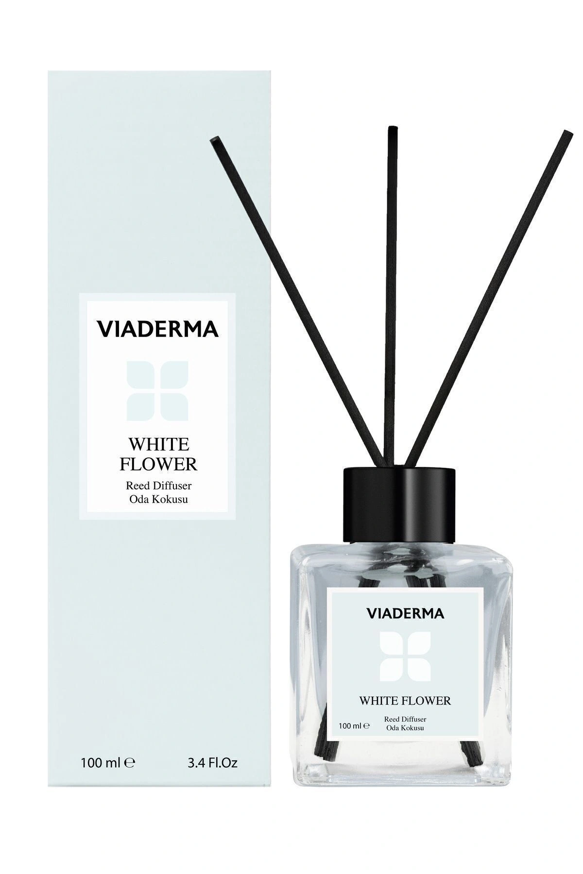 Viaderma Kare Şişe Beyaz Çiçek Esanslı Bambu Çubuklu Oda Kokusu 100 ml