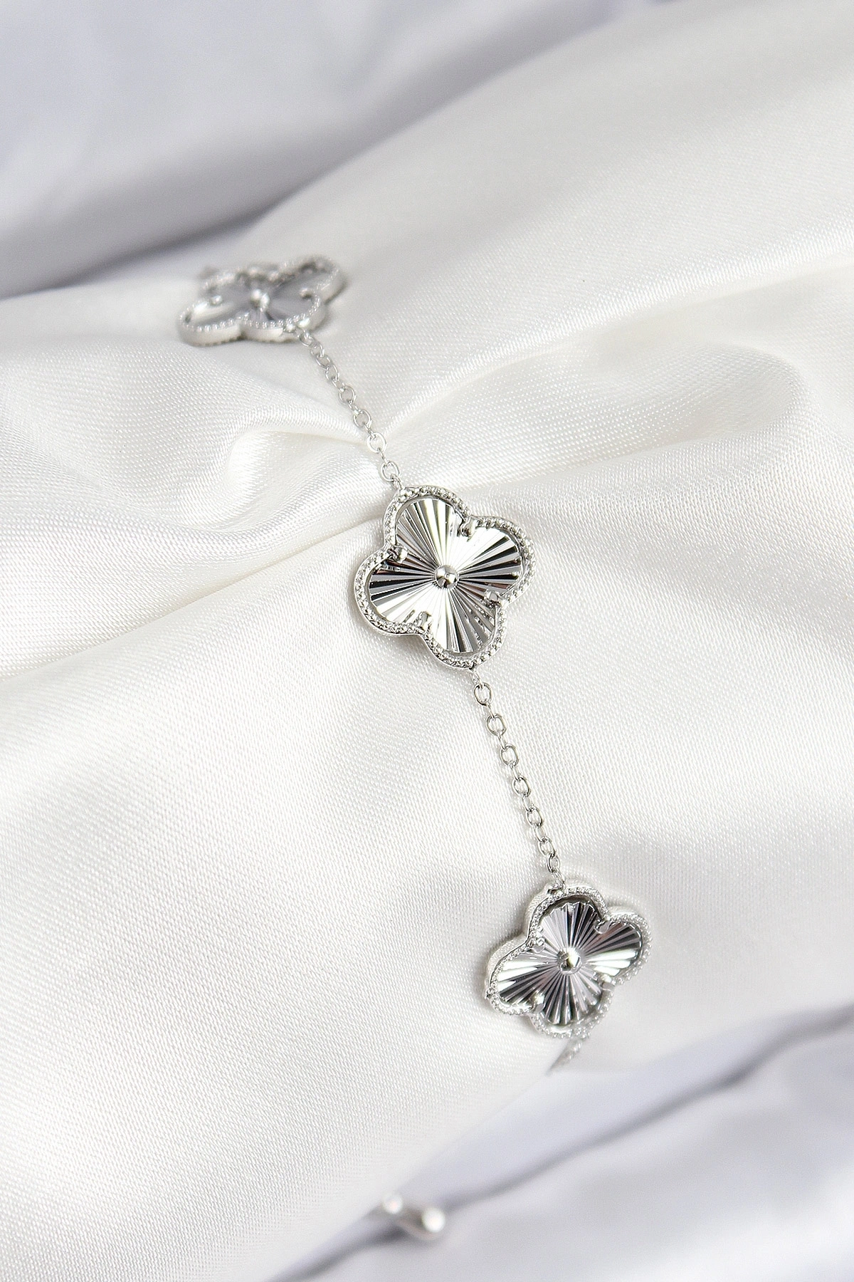VIP Pirinç Yonca Model Gümüş Renk Kadın Bileklik