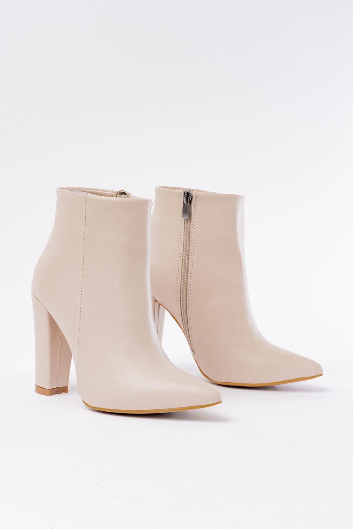 02-2013 Bej Toka Aksesuarlı Fermuarlı Günlük Kadın Bot