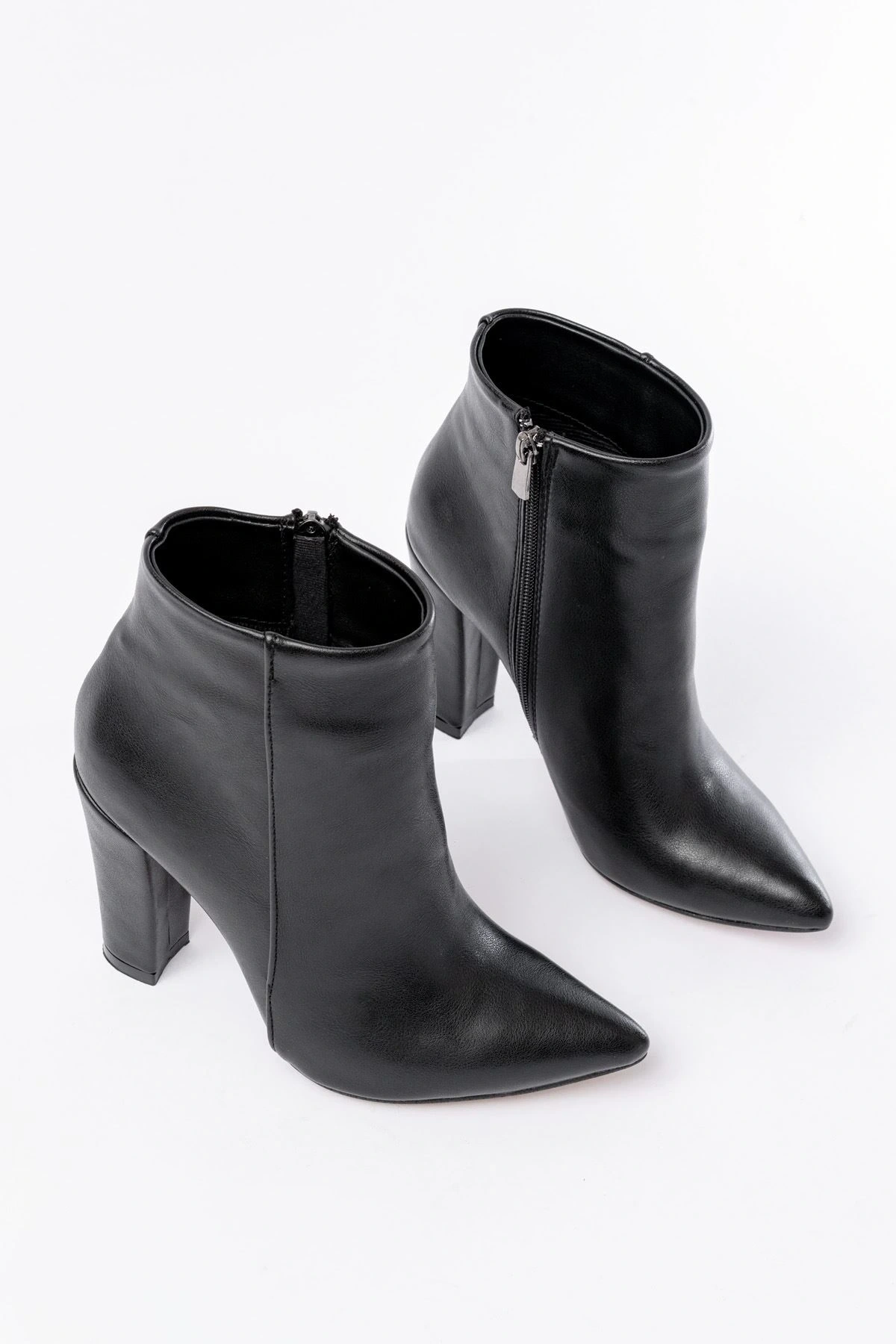 S-2008 Siyah Fermuarlı Sivri Burun İnce Topuk Günlük Kadın Bot